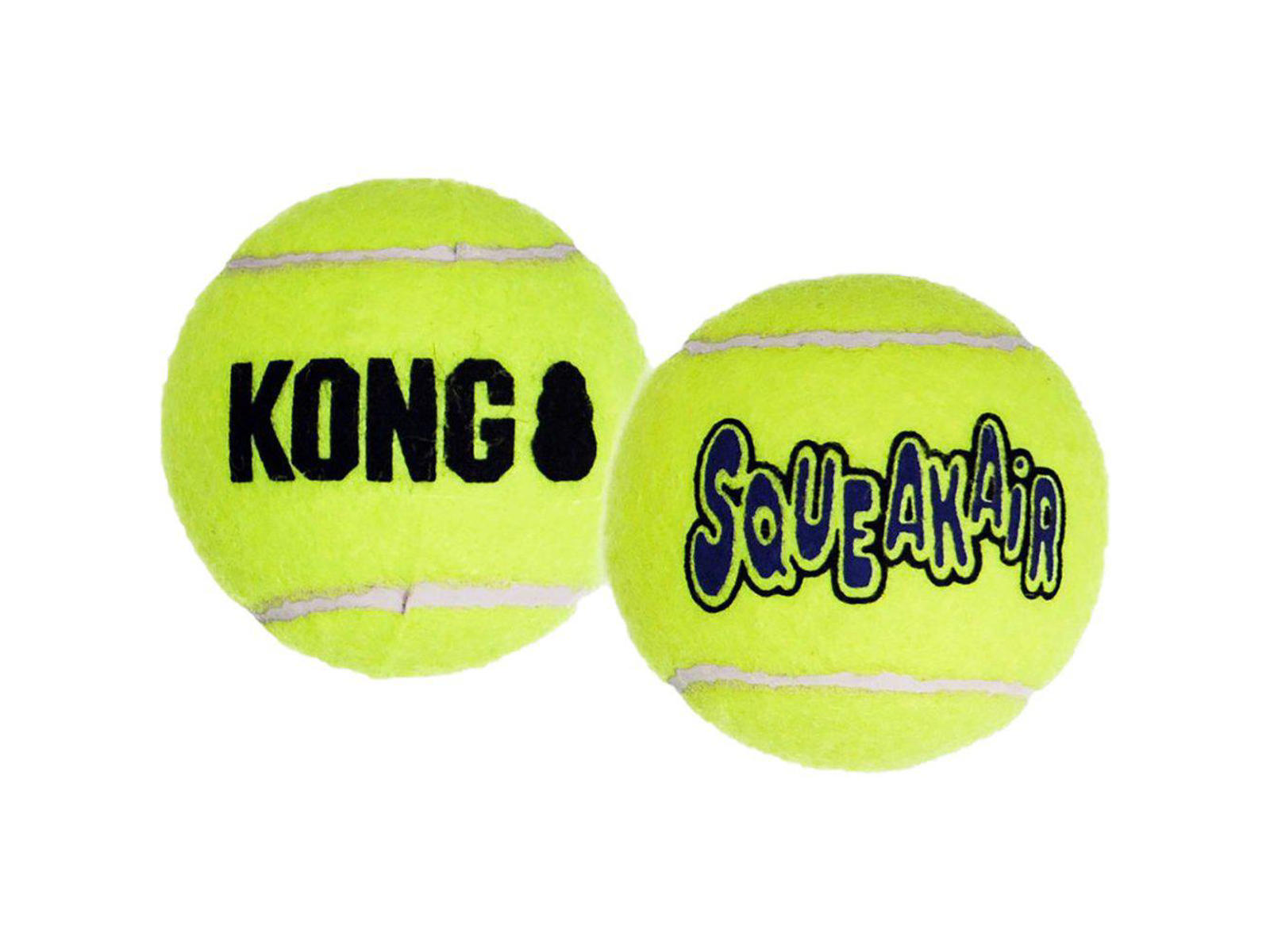 • KONG SqueakAir® Ball kombinerer to klassiske hundelegetøj - tennisbolden og squeaker-legetøjet - for at skabe det perfekte hentelegetøj. Vores holdbare Squeak air® tennisbold af høj kvalitet slider ikke på din hunds tænder. Den er lavet med en speciel ikke-slibende filt.