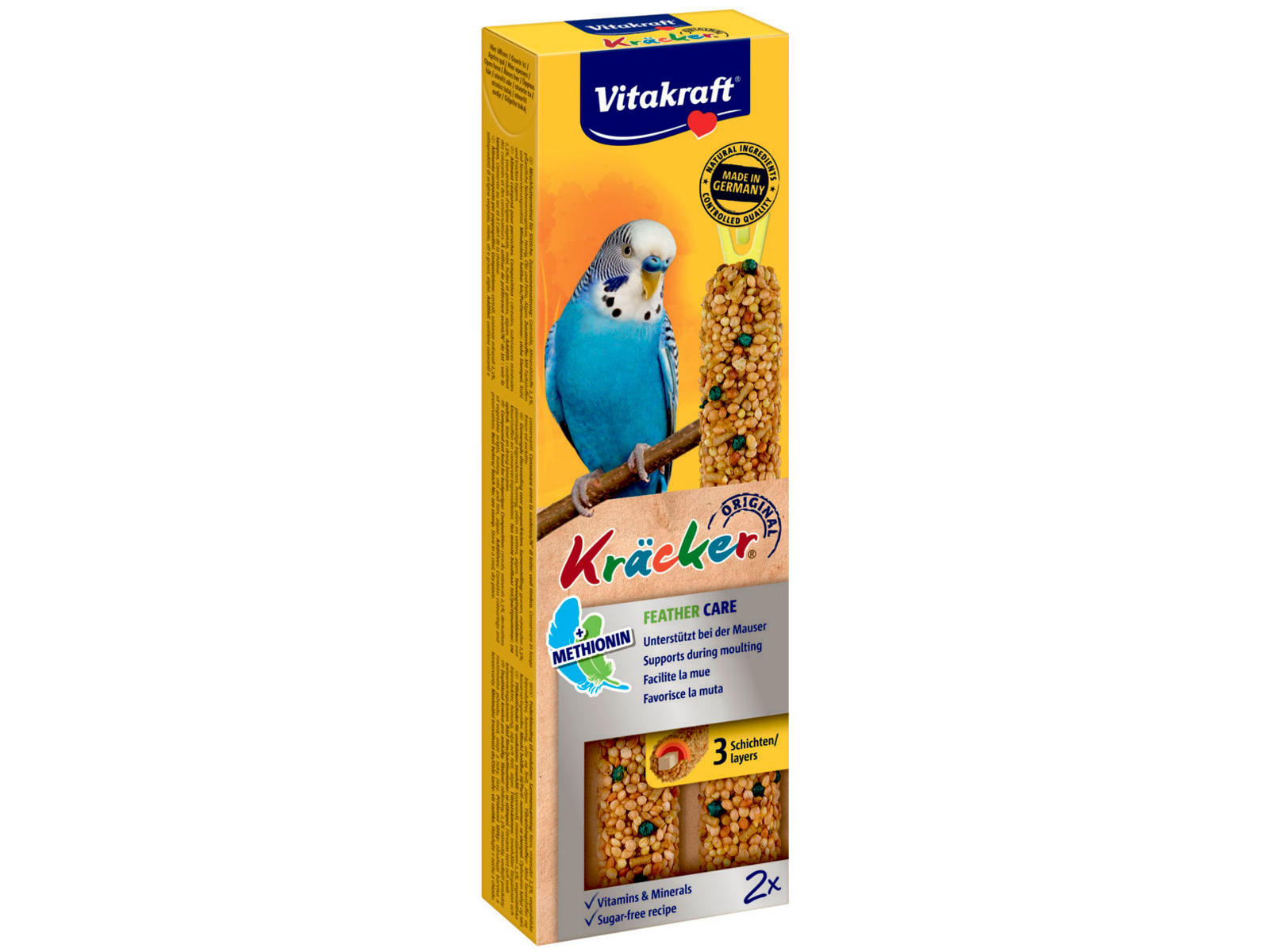Vitakraft Kräcker Fjerpleje er bagt på naturtræ og har tre lækre lag, der giver dine undulater en masse gnaveglæde.