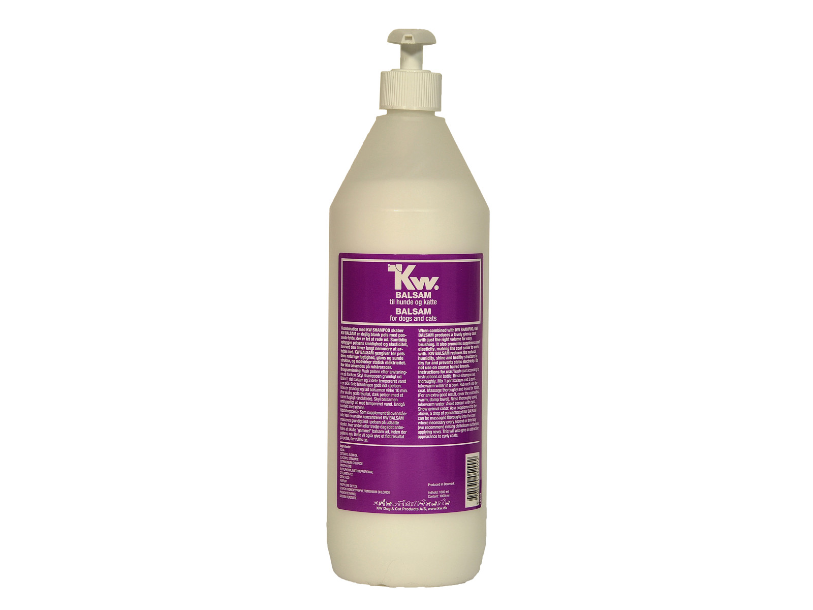 KW BALSAM giver en blød, glansfuld og letredelig pels. Ideel til både hunde og katte (undtagen ruhår), og modvirker statisk elektricitet. Perfekt til udstilling og daglig pleje.