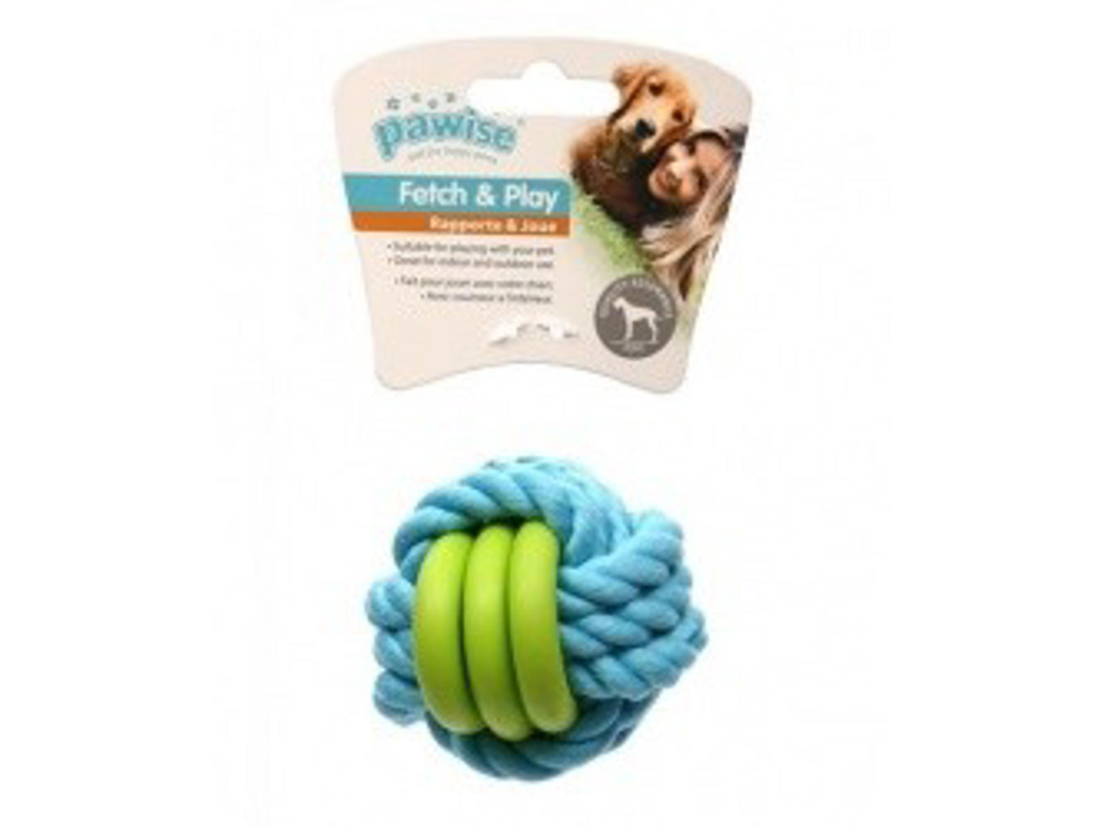 Bidebold af reb, med påførte ringe i TPR, som er et yderst stærkt materiale, som hunde generelt har meget svært ved at rykke fra hinanden.Glimrende stykke legetøj for mental stimulering samt bedre tandhygiejne.