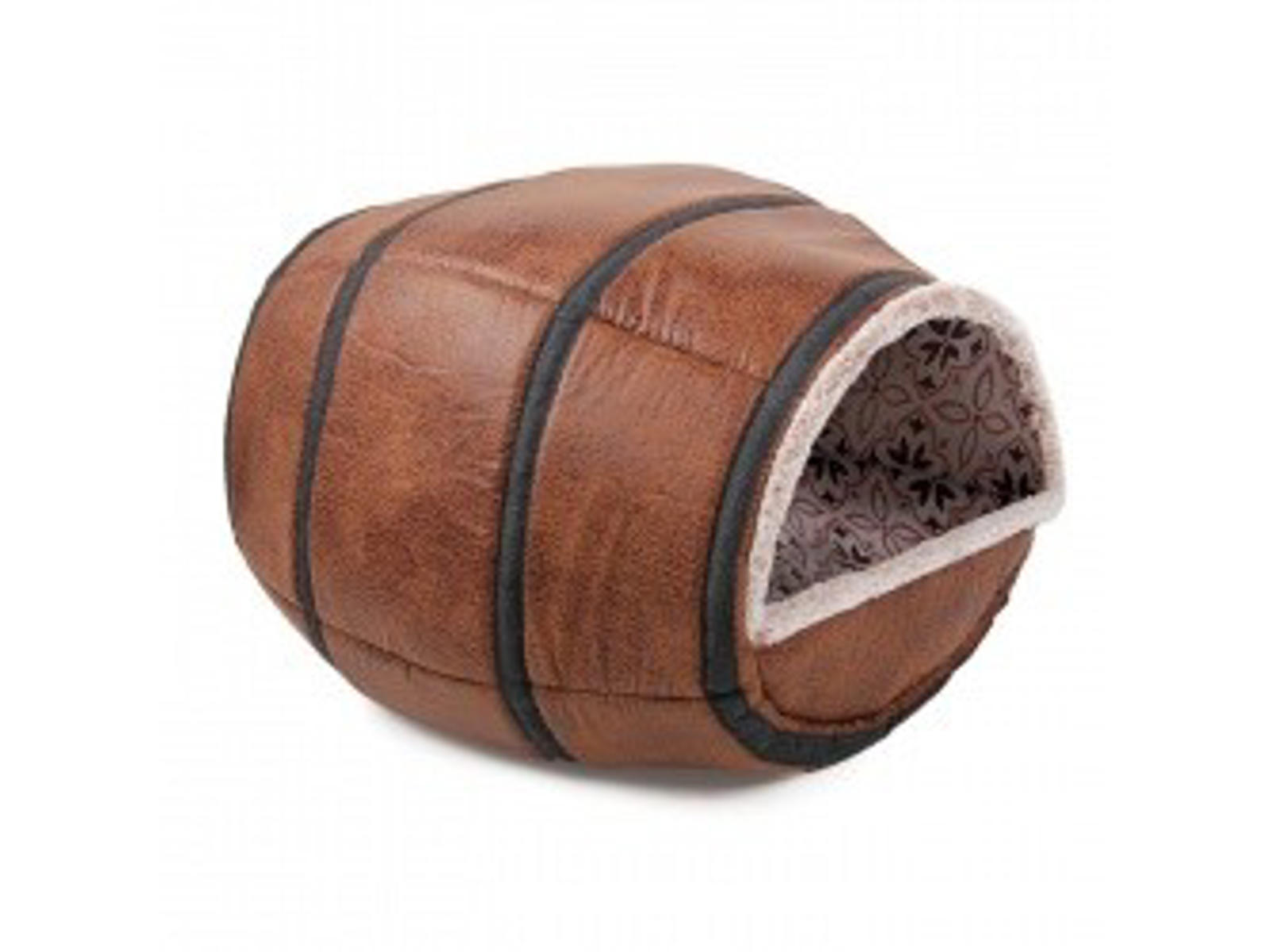 Sovetønde formet som en øltønde. Fantastisk soveplads til katten, som samtidig ser sjov ud og pyter imens.