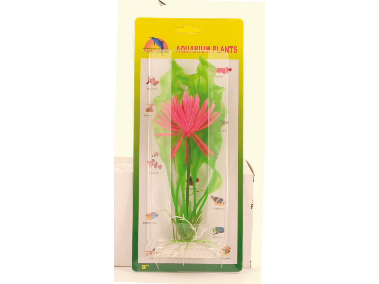 Denne plastplante med blomst på 20 cm er en dekorativ og naturtro akvarieplante, der passer perfekt til både ferskvands- og saltvandsakvarier. Planten er fremstillet i fleksibelt og farvebestandigt materiale, som bevarer sit udseende over tid uden at påvirke vandkvaliteten.