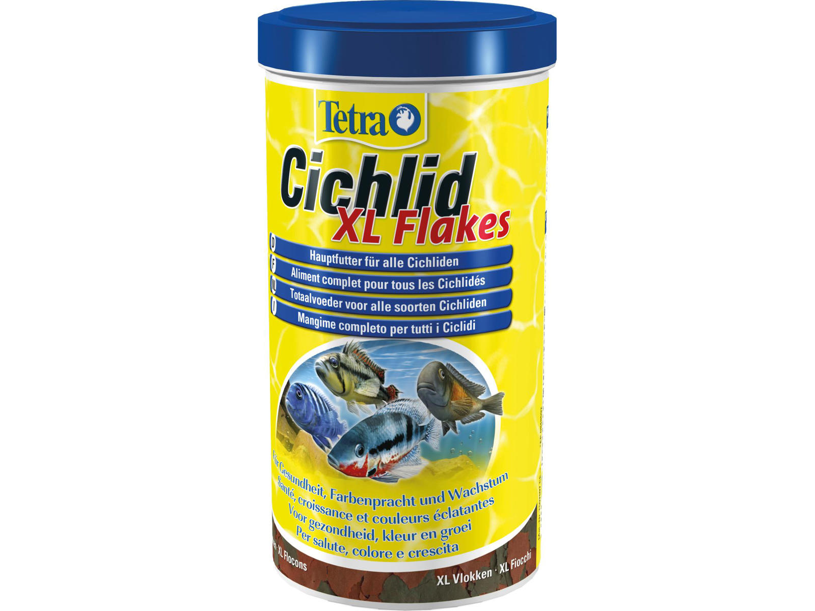 Tetra Cichlid XL Flakes. Indeholder en høj andel af animalske Proteiner og næringsstoffer.