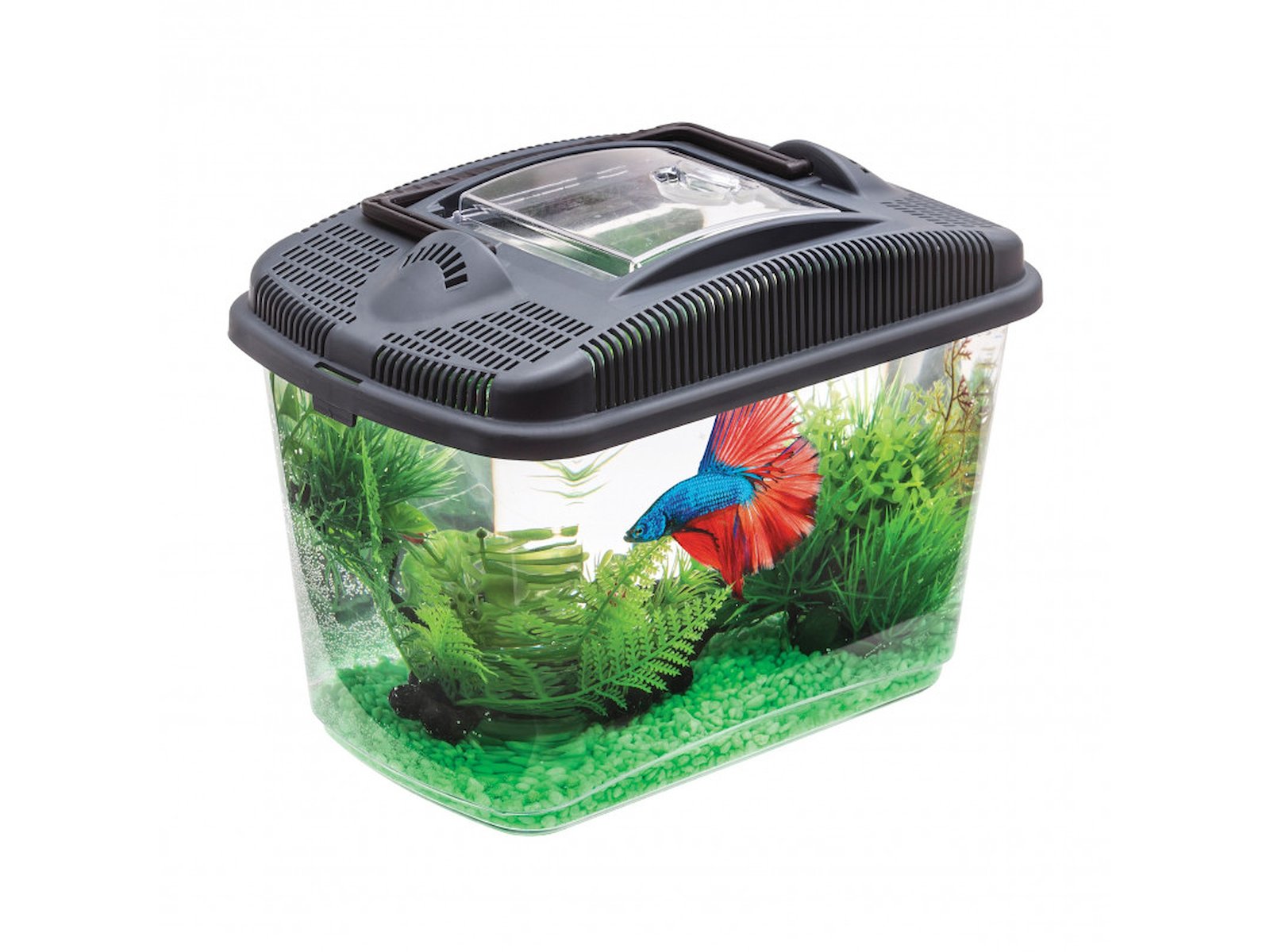 Betta Kit er udviklet med fokus på funktionalitet og brugervenlighed. Den åbne top giver nem adgang til fodring og vedligeholdelse, mens det klare plastmateriale sikrer godt indsyn fra alle vinkler.