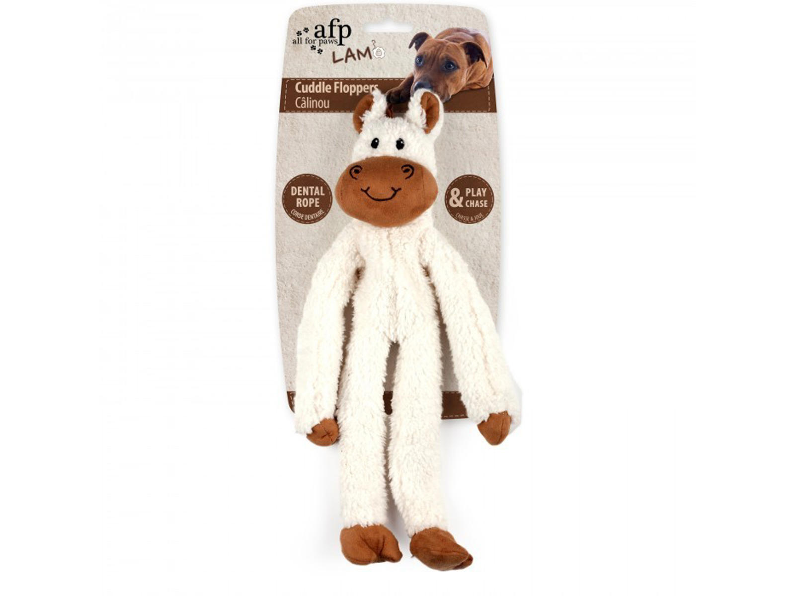 Lad din hund nyde det sjove ved at lege med denne Cuddle Ropey Flopper. Den er lavet af blødt imiteret ruskind, lammeplys og reb. Stoffet giver et fantastisk taktil indtryk. Indre squeaker tiltrækker hundens opmærksomhed og lokker den til at lege. Med sit tømmerreb og arm er den nem at bære rundt og lege med.