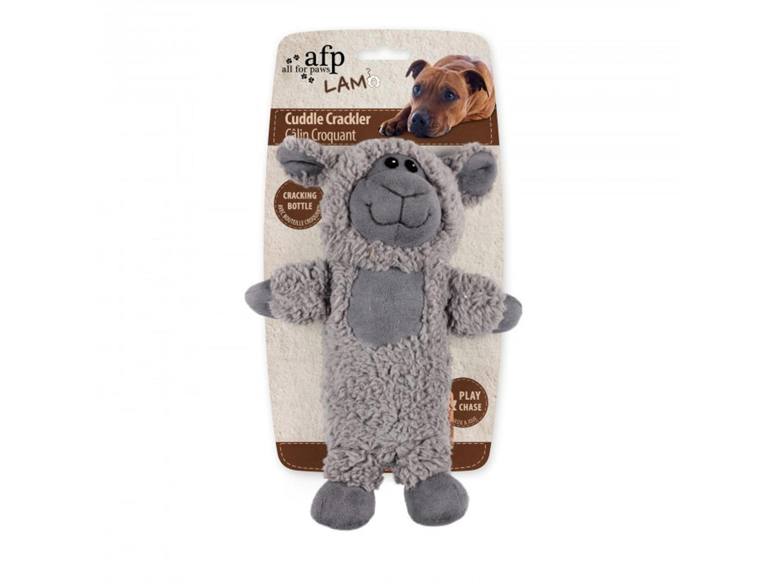 • Lad din hund nyde det sjove ved at lege med dette Cuddle Crackler legetøj. Den er lavet af blødt imiteret ruskind, lammeplys og reb. Stoffet giver et fantastisk taktil indtryk. Hunde elsker lyden af den knitrende flaske inde i legetøjet..