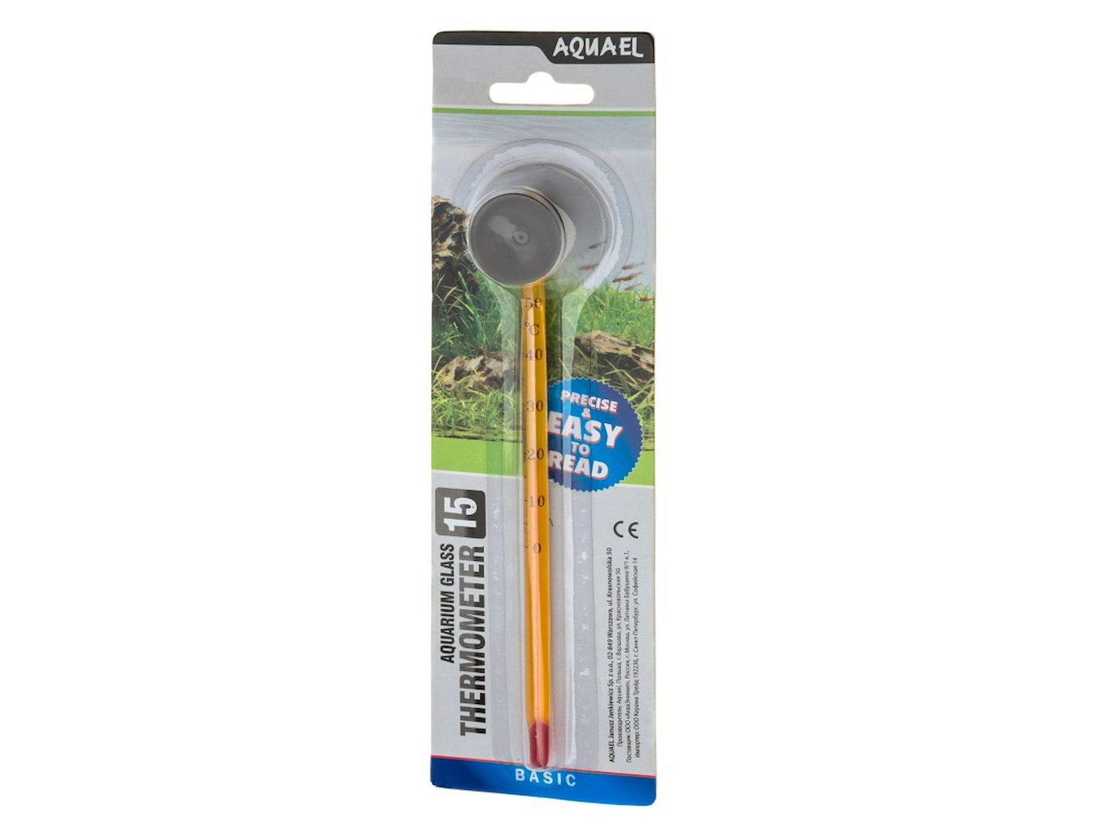 Et enkelt og effektivt glastermometer i en tydelig gul farve, der gør det nemt at aflæse temperaturen i dit akvarium. Termometeret er designet til at hænge diskret i vandet med den medfølgende sugekop og passer perfekt til både fersk- og saltvandsakvarier.