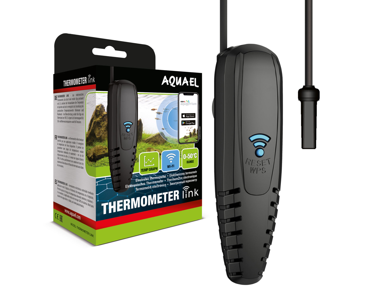 • Det første elektroniske termometer, der styres via Aquael Aqurium-mobilapplikationen.