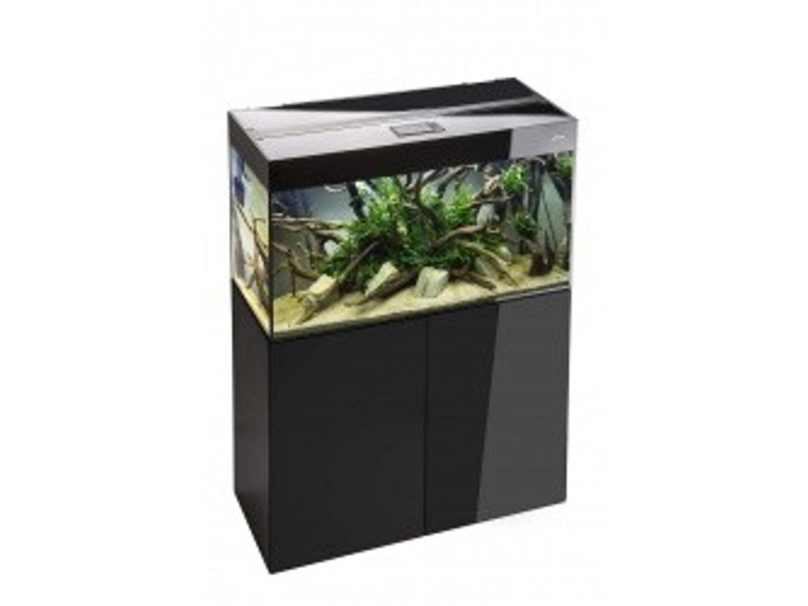 En linje af eksklusive GLOSSY akvariesæt til opsætning af elegante ferskvandsakvarier med farver tilpasset designet af moderne interiør. GLANSET sæt består af en specialhævet tank indeni, hvori der i den øverste del er limet et låg med belysning. Takket være denne innovative løsning blev den unikke effekt af en enkelt glasblok opnået, toppet med et elegant sort bånd. GLOSSY sæt passer perfekt ind i moderne interiør og udgør et originalt element i deres indretning. Dækslerne på sættene inkluderer moderne LED-belysning, som sikrer en korrekt udvikling af planter og det naturlige udseende af tankens indre. Sættet indeholder to energibesparende belysningsmoduler, og yderligere to kan tilbydes køberen som ekstra tilbehør, hvilket gør det muligt effektivt at kombinere salget. Brugen af disse moduler reducerer omkostningerne til akvariebelysning med 50% og eliminerer behovet for hyppig udskiftning af lysstofrør. Der er specielle monteringshuller på bagsiden af dækslet. De giver dig mulighed for frit at installere ethvert beholderfilter og andre akvarieenheder. GLOSSY sæt er ideelle til opsætning af plante- og biotoptanke samt traditionelle sociale akvarier. De tilbydes i fire størrelser fra 80 til 150 cm i længden (kapacitet fra 125 til 405 l). Til hvert GLOSSY sæt kan du købe et specielt sort skab i samme stil. GLOSSY sættet sammen med kabinettet skaber en kompakt, elegant form, der blænder med sin elegance. Sættet indeholder en måtte, der beskytter bunden af akvariet.