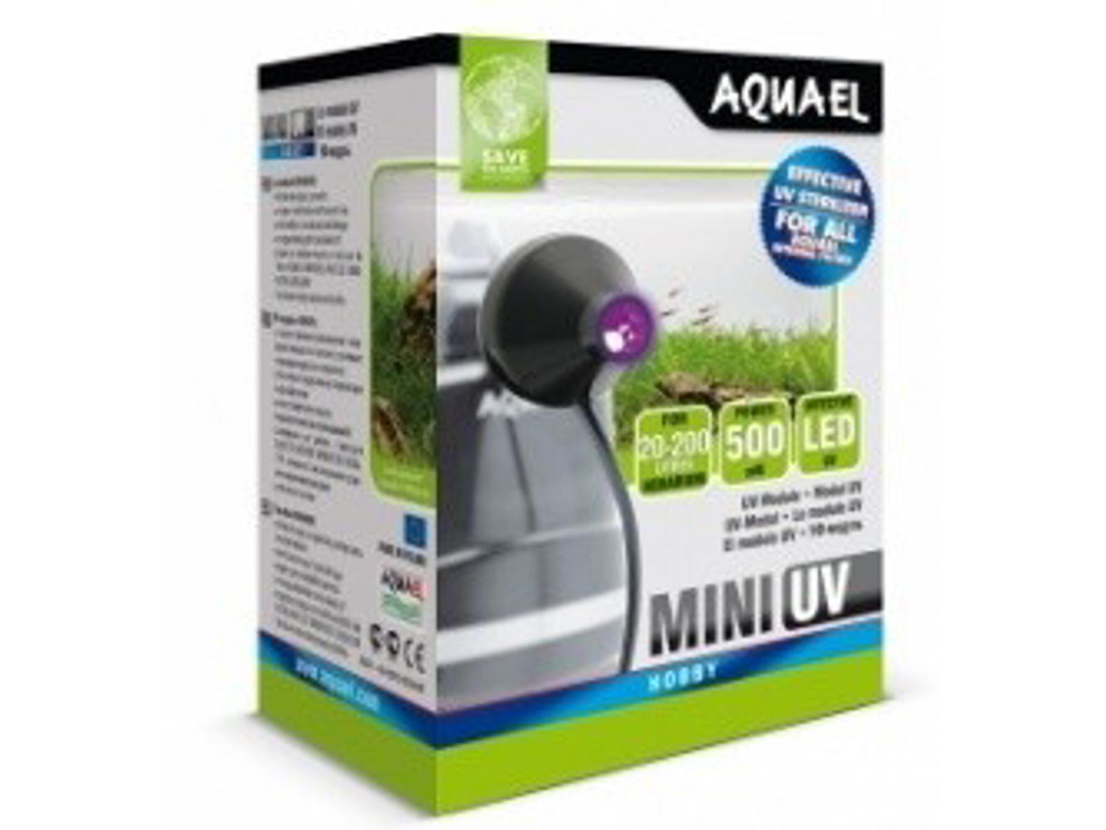 • MINI UV LEDuniversal (samarbejder med alle AQUAEL interne filtre) eliminerer effektivt bakterier, protozoer og flydende alger ved et lavt strømforbrug (mindre end 1W) kompakt i størrelse (pletter ikke akvariets indre) let at installere langtidsholdbar og fejlfri