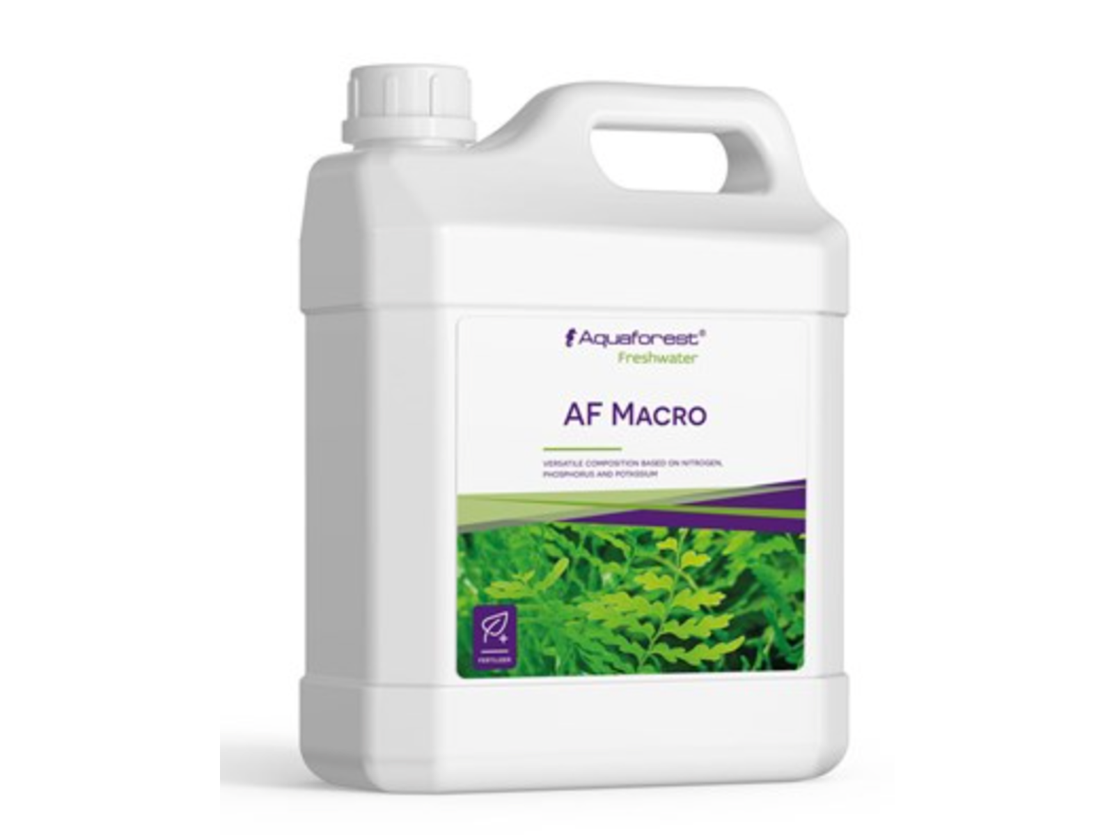 Højkoncentreret basisgødning med et komplet sæt makroelementer, der er nødvendige for intensiv plantevækst. AF Macro er en præcist udvalgt sammensætning indeholdende nitrogen, fosfor og kalium (NPK) beriget med magnesium. Regelmæssig brug af AF Macro sikrer hurtig og sund vækst af planter og garanterer deres intense og naturlige farve. Det perfekte forhold mellem makronæringsstoffer giver alle de nødvendige stoffer, som planter bruger i deres naturlige miljø. Makroelementer deltager i cellestrukturer, proteiner og enzymudvikling, og de er også en del af nukleinsyrer. AF Macro er ikke kun den elementære byggesten, men dens komponenter transporterer og akkumulerer også energi. Mangel på makroelementer forårsager væksthæmning, svækkelse af skud og misfarvning af blade. AF Macro er perfekt til stærkt plantede akvarier med en lille mængde fisk.
