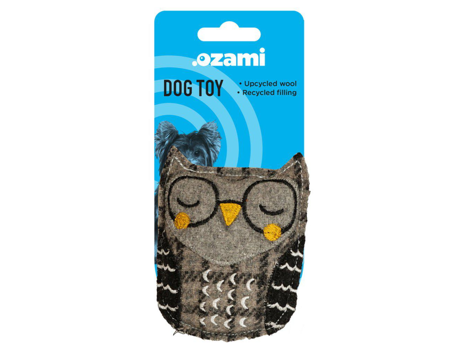 Sødt legetøj til din hund, lavet af genbrugsuld og fyldt med genbrugsfyld! Et klimasmart valg af legetøj til din firbenede ven. Fremstillet af klimasmarte materialer Fyldt med genanvendt hvid polyfill Farvet med azo-fri farvestoffer Uldtæppet, der pryder ydersiden, er lavet af gamle trøjer og andet brugt uld. En squeaker indeni bipper, når din hund leger med uglen