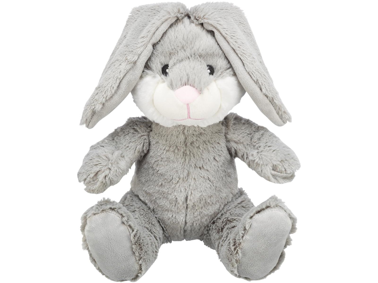 Blød og bæredygtig hundebamse i plys lavet af genanvendt materiale. Grå kanin i 25 cm – ideel til leg og hygge.