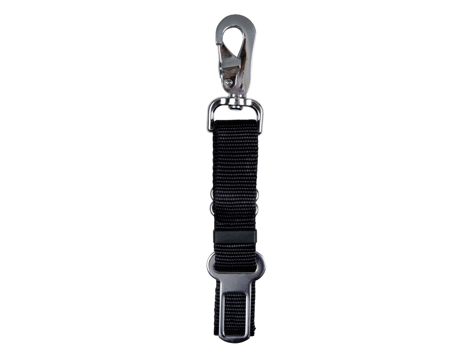 Seleholder til at spænde hundes sele fast i bilens indbyggede seleholder.Vær opmærksom på at seleholderen ikke passer til alle biler, så læg mærke til om spændet på seleholderen passer med spændet på bilens indbyggede seler.