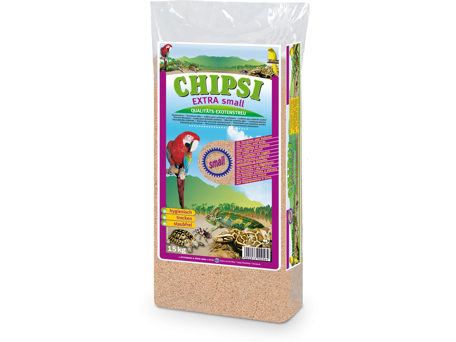 CHIPSI EXTRA er det ideelle alternativ til sand eller træspåner: det teknologisk raffinerede bøgetrægranulat er specielt tilpasset passer til krybdyrs behov, forskellige typer fugle og