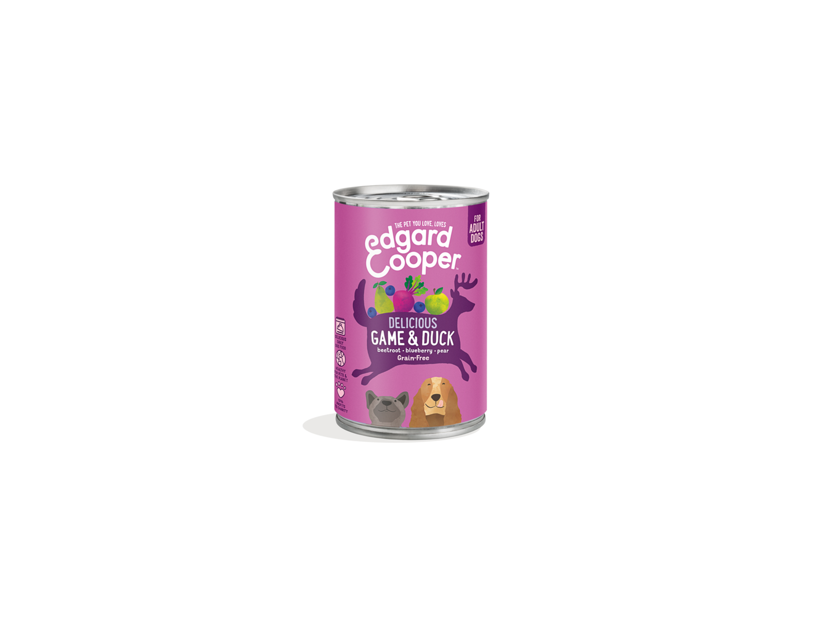 Denne kødfulde, kornfri opskrift er lavet ved hjælp af vildt og and - begge fantastiske nye proteinkilder, der er særligt gode til hunde med følsomme maver. Vildt er spækket med Omega-3, og opskriften indeholder også præbiotika, der understøtter en sund tarm. Som en bonus kombinerer vi kødet med indmad (som hjerte og lever) for en ekstra portion næring. Vi blander vores opskrifter med en supersund blanding af frugt og grønt, plus et ekstra boost af urter og planter. Så damper vi det forsigtigt for at låse al smag og godhed ind.