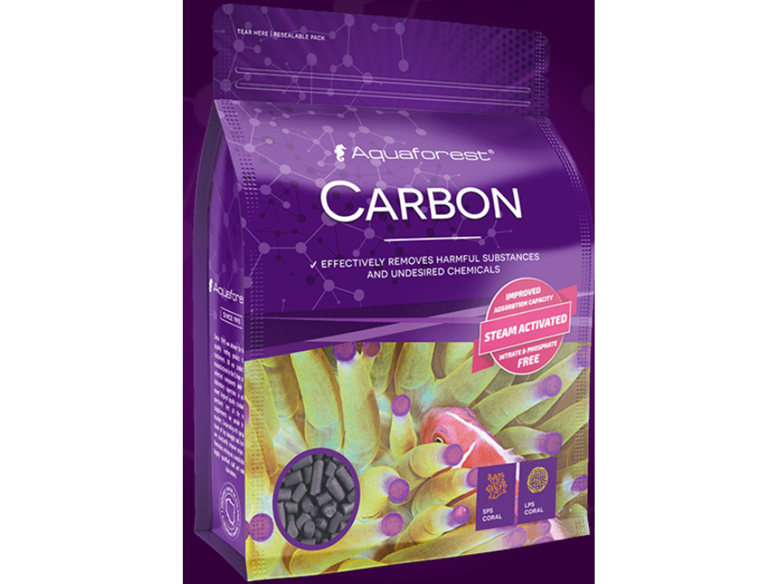 AF Carbon er et professionelt valg for akvarister, der ønsker hurtig og effektiv rensning af akvarievand, samtidig med at fisk, koraller og mikroorganismer beskyttes mod usynlige kemiske trusler.