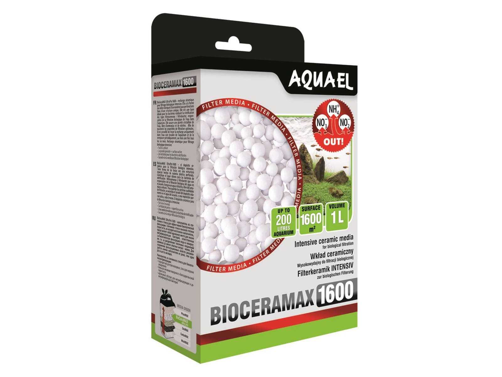 BioCeraMAX UltraPro 1600 er Aquaels mest avancerede biologiske filtermedie, designet til både ferskvands- og saltvandsakvarier, samt paludarier, akvaterrarier og terrarieanlæg med vand. Det består af porøse kugler fremstillet af fint sinterglas, som giver en imponerende biologisk filtreringsoverflade på hele 1600 m² pr. liter – ideelt til etablering og vedligeholdelse af stærke nitrifikationsbakteriekolonier.