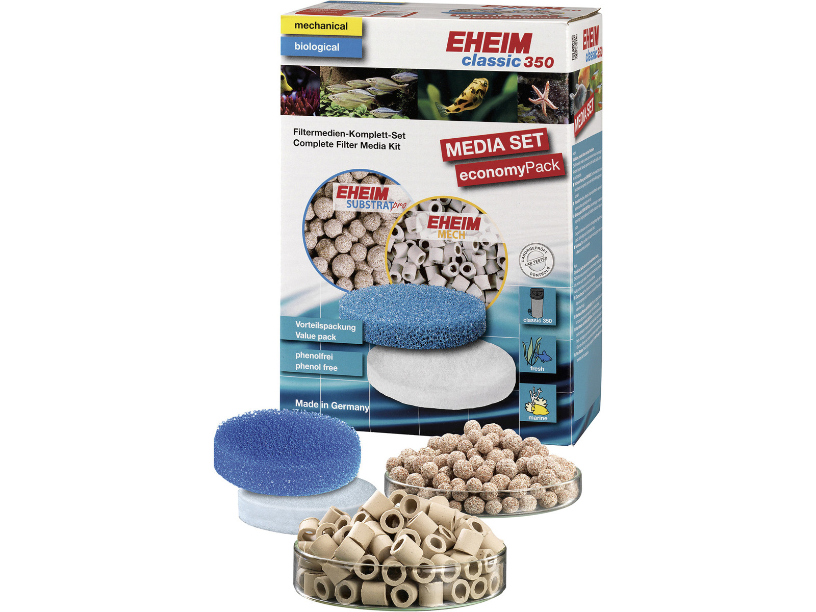 Filter mediesæt til model 2076/2078 og 2178 indeholder:4x 1l Eheim MECHpro 2x 1L Eheim bioMECH 2x 1L Eheim SUBSTRATpro 1x forfilter 1x filter stof