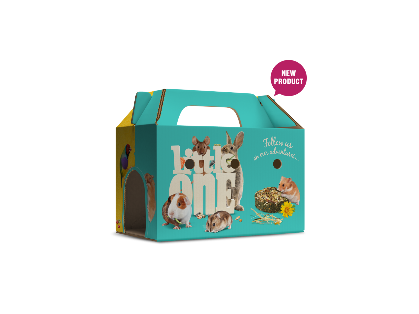 Desuden kan det omdannes til et midlertidigt kæledyrshus ved at fjerne døren på siden langs perforeringslinjen.