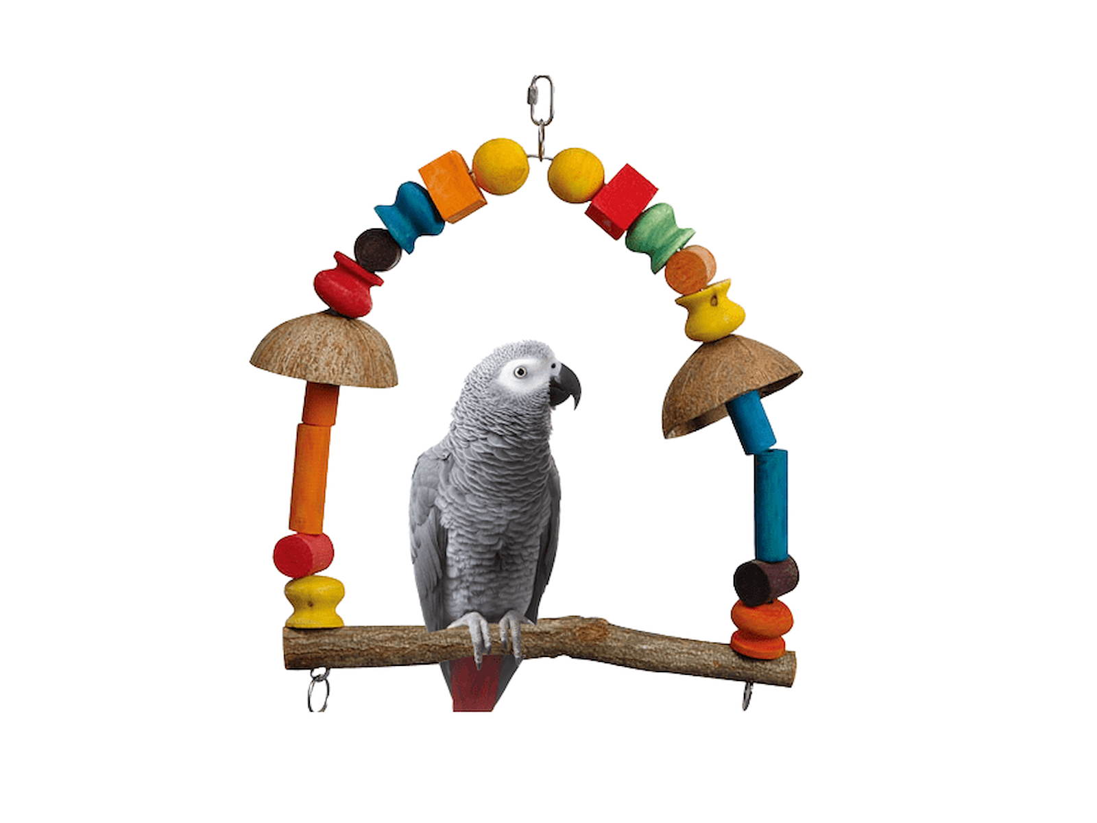 Papegøjegynge med Farverige Træperler & Kokosskaller – 41 x 10 x 38 cm