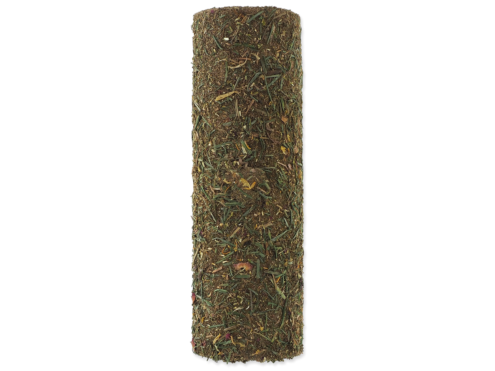 Sammensætning: naturfibre, stivelse, hø 12% af enge, tørrede morgenfruer 1,8%, tørrede roser 0,75%.