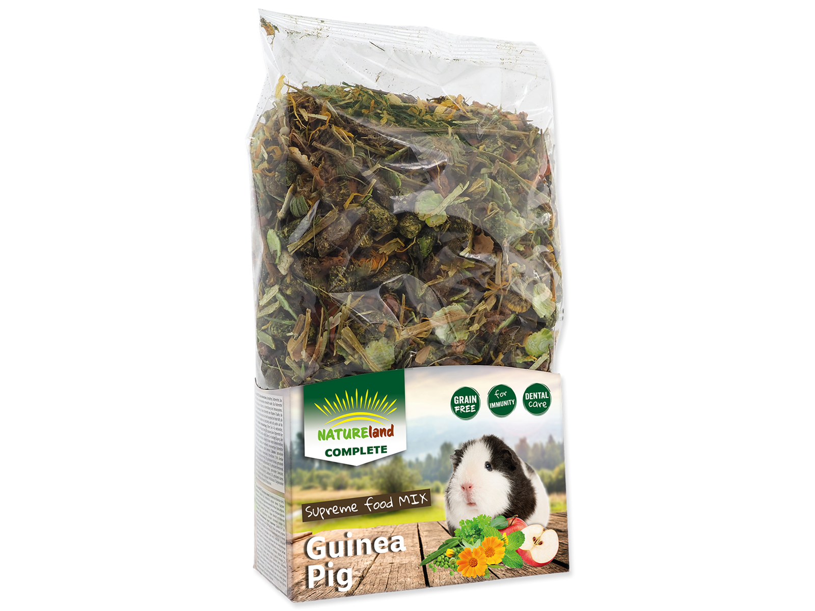 Komplet foderblanding udviklet specifikt til marsvins behov. Den indeholder et stort antal urter til at understøtte immunsystemet. På grund af sin sammensætning er foderet en kilde til C-vitamin, som marsvinene har brug for for deres liv. Det høje fiberindhold i maden er med til at slibe tænderne naturligt samtidig med, at det har en positiv effekt på fordøjelsen. Anbefalet fodringsanvisning: Server 4-7 gange om ugen, giv altid med Nature Land HAY. Den kan suppleres med mad fra Nature Land BOTANICAL familien. Sikre ubegrænset adgang til frisk drikkevand. Opbevares på et køligt, tørt sted, væk fra direkte sollys. Giv ikke vådt, dampende eller på anden måde nedbrudt foder! Ikke beregnet til konsum.
