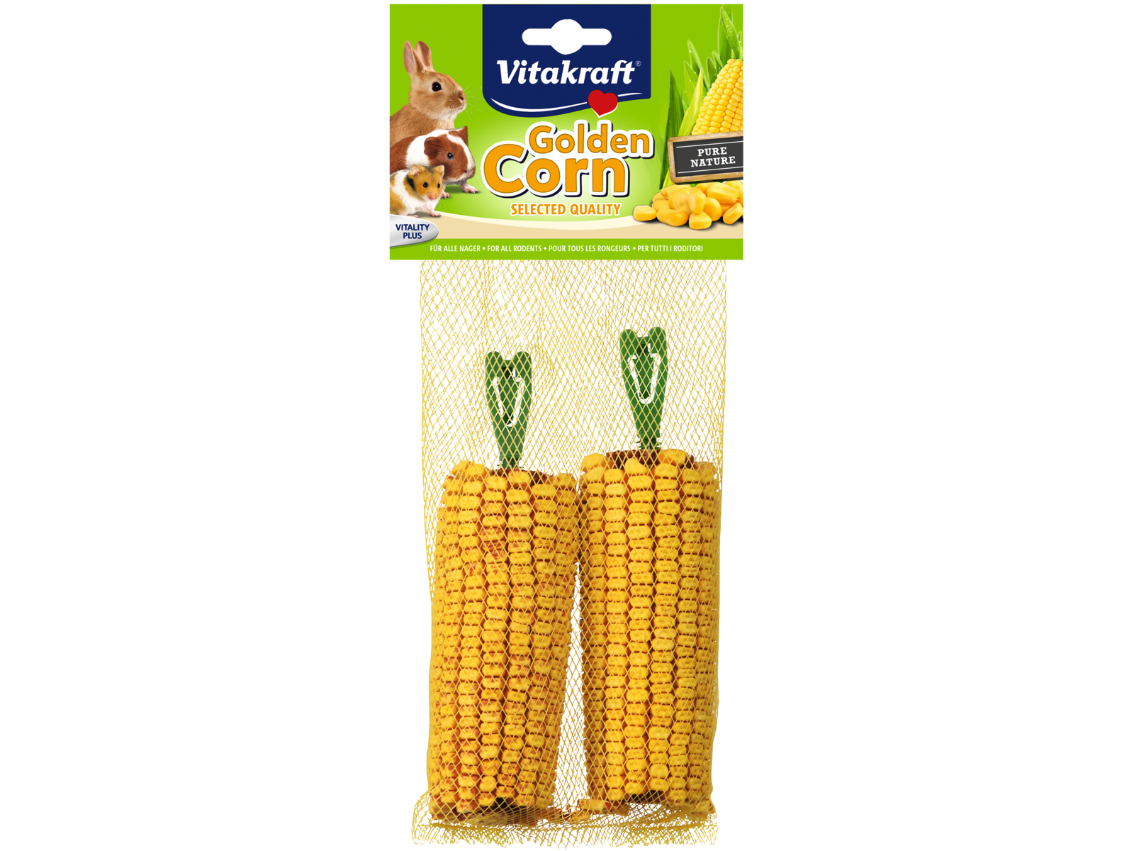 Vitakraft Golden Corn er 2 lækre majskolber, som gnaverne vil elske at prøve kræfter med.