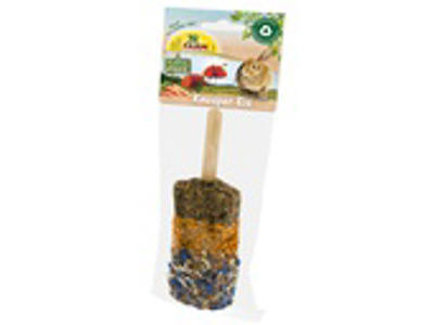 JR Farm Crispy Is er en lækker is på pind til kæledyr, lavet af fint hø, urter og frø, med sprød gulerod og duftende kornblomstblomster. Perfekt som en fristelse året året rundt.