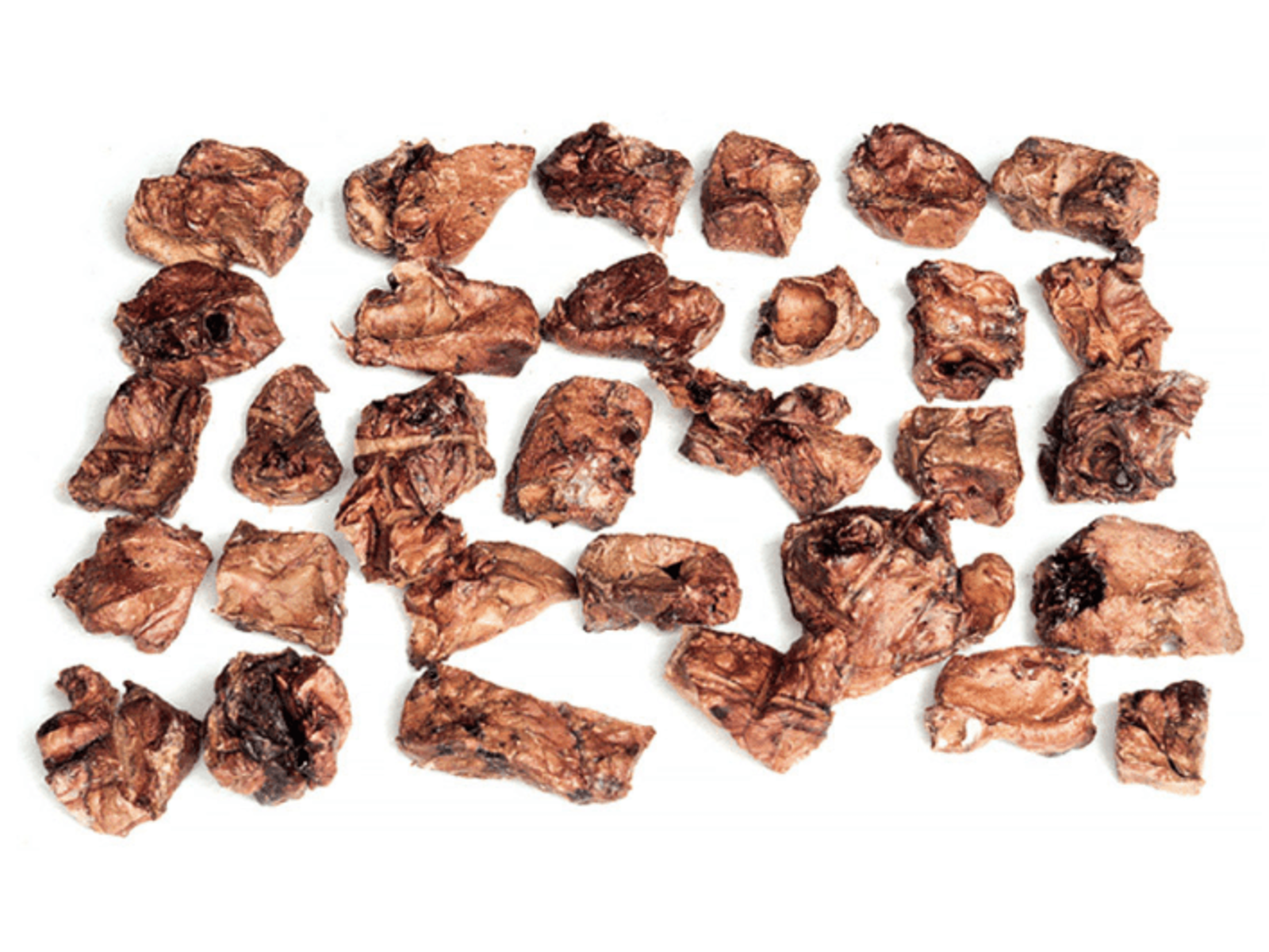 Okselunger skåret i tern og derefter tørret er en lækker snack - og bliver fortærret med største velbehag.