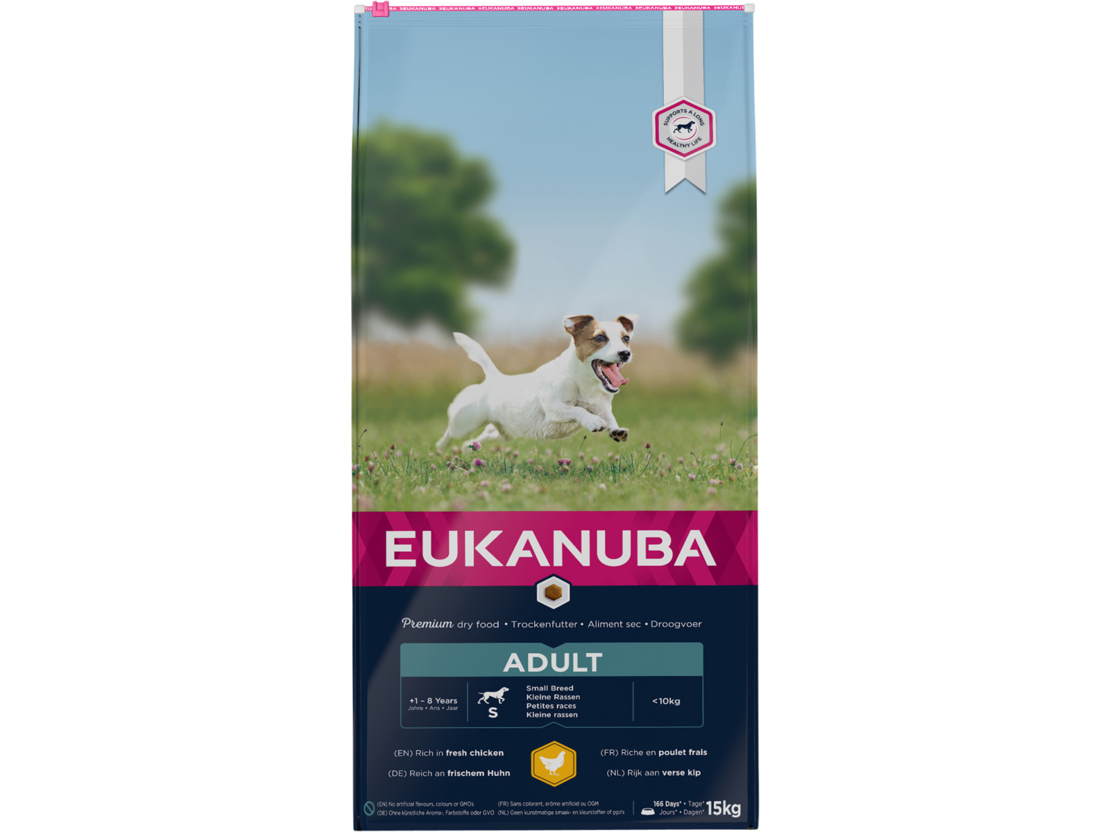 • Eukanuba tørfoder er rigt på frisk kylling og perfekt til små voksne hunde i alderen 1 til 8 år.