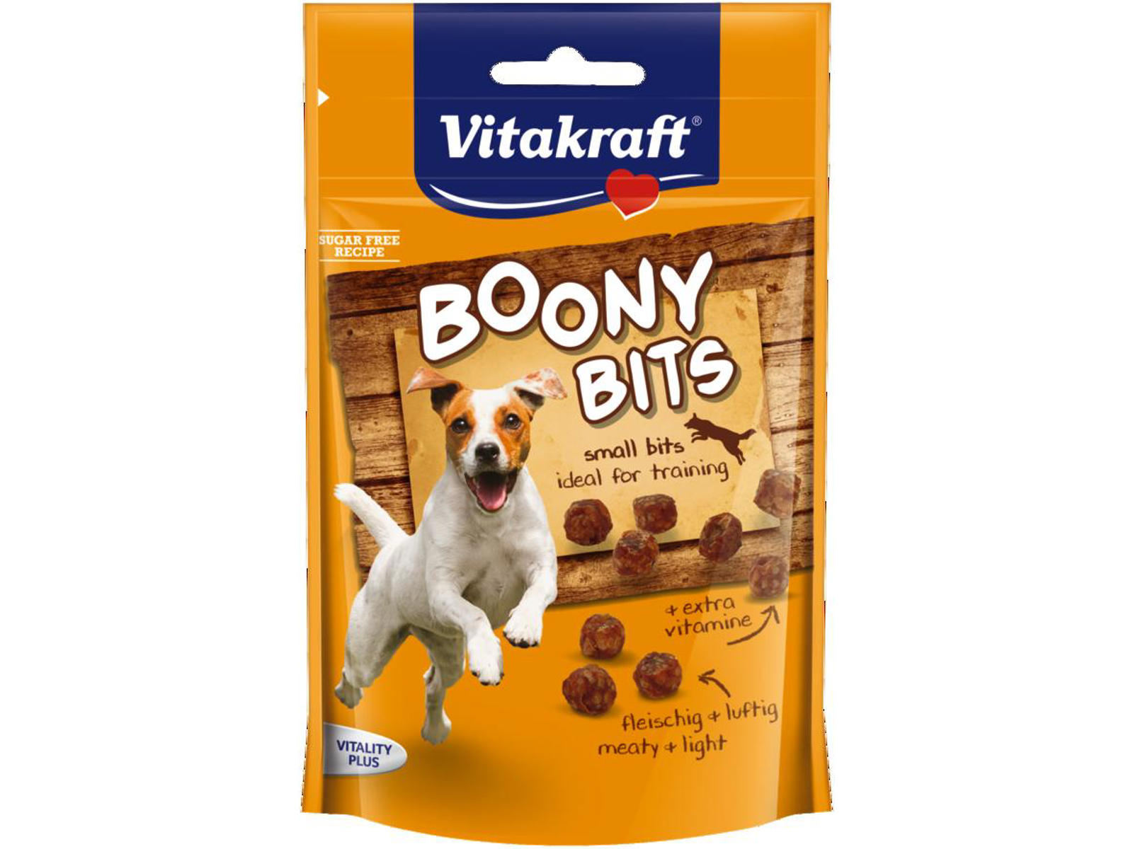 Med Vitakraft Boony Bits forkæler du din hund med lækre og luftige godbidder, der er spækket med kød og din hund vil ikke kunne vente med at spise dem. Derfor er det heldigt, at de også er fedtfattige, så hunden får noget lækkert uden at skulle bekymre sig om sin vægt. Det er dog vigtigt, at hunden ikke får for mange godbidder. Den skal have et rigtigt tør- eller vådfoder i hverdagen. Og det er fornuftigt at tilpasse fodermængden, hvis du giver hunden godbider.