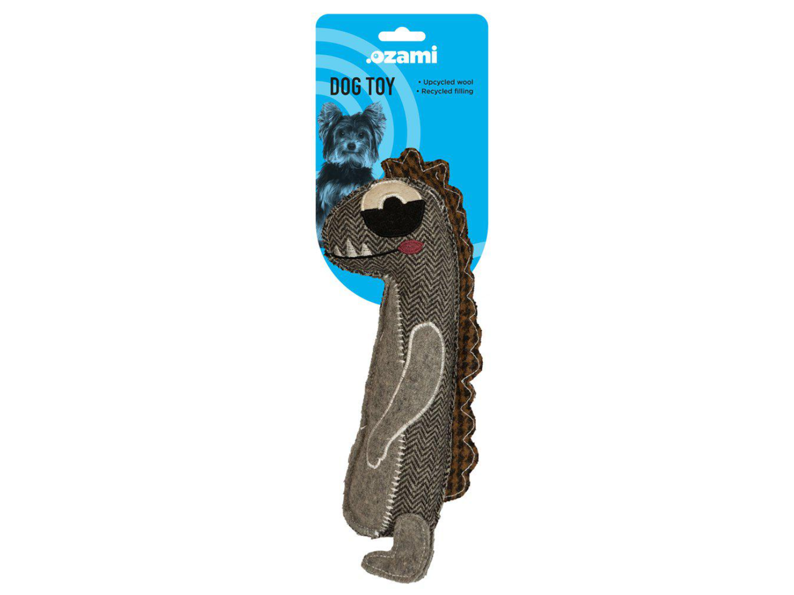 • Fremstillet af 60 % uld og 40 % blandede fibre er genbrugsuldfilt et miljøvenligt materiale. Ulden er genereret af kasserede trøjer og uldtøj, som derefter vaskes og behandles, før det rives og til sidst bliver til garn, som derefter bruges til at skabe nyt stof. Genanvendt uldfilt er et af de mest populære materialer til legetøj på grund af dets udseende og holdbarhed. Legetøjet bruger azo-fri farvestoffer og er fyldt med genanvendt hvid polyfill. Ozamis miljøvenlige legetøjsserie vil glæde dine kæledyr. Serien består af legetøj formet som skovdyr i efterårsfarver. Serien indeholder også en masse sjovt monsterlegetøj. De har sjove og overdrevne udtryk og vil give actionfyldt spilletid med interaktive ører og haler.