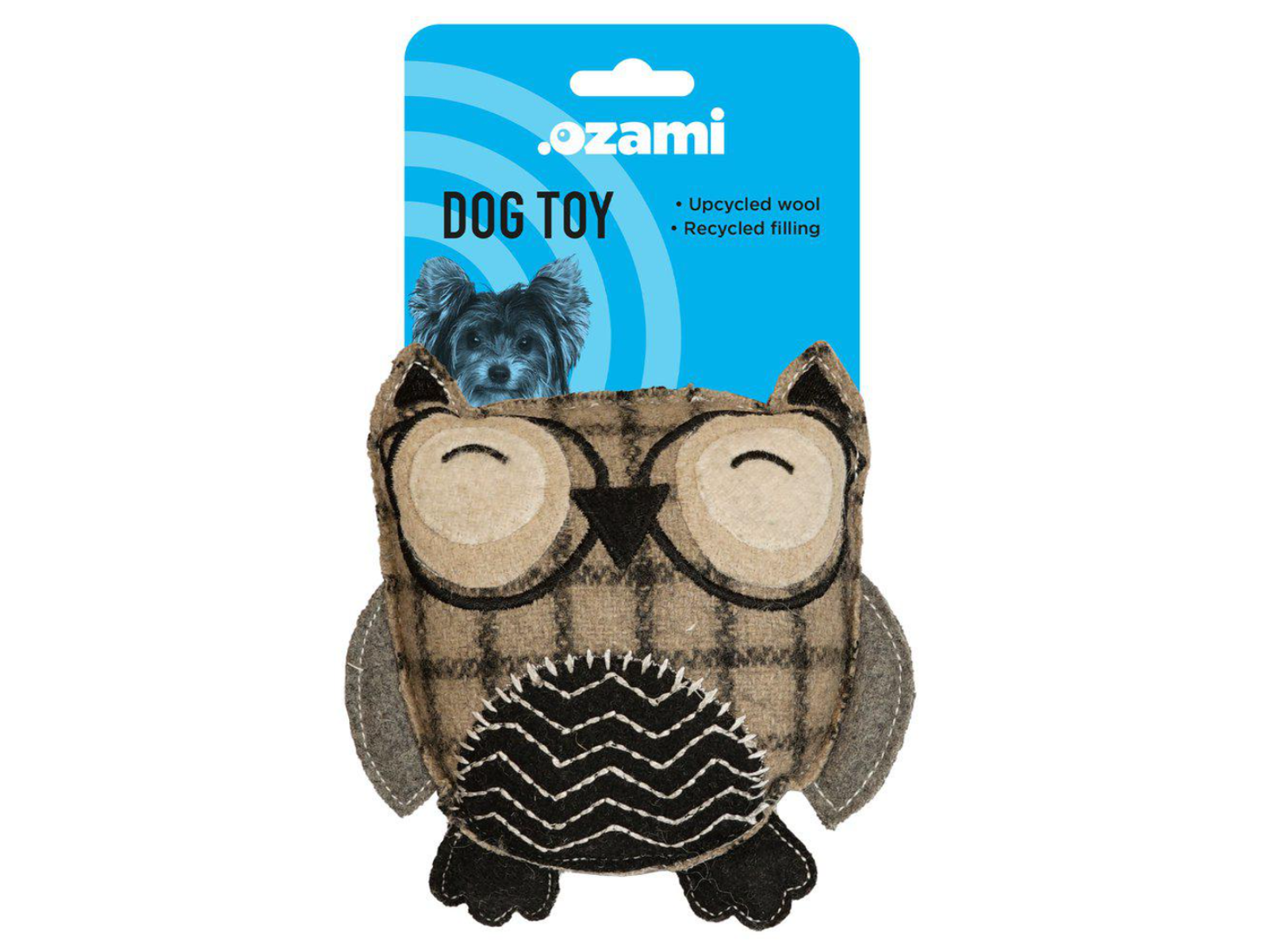Sødt legetøj til din hund, lavet af genbrugsuld og fyldt med genbrugsfyld! Et klimasmart valg af legetøj til din firbenede ven. Fremstillet af klimasmarte materialer Fyldt med genanvendt hvid polyfill Farvet med azo-fri farvestoffer Uldtæppet, der pryder ydersiden, er lavet af gamle trøjer og andet brugt uld. En squeaker indeni bipper, når din hund leger med uglen