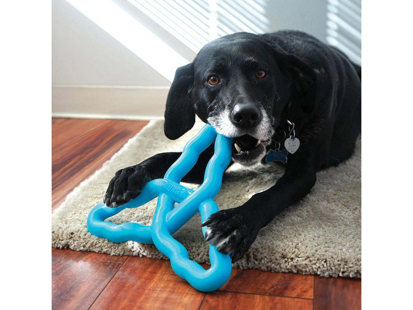 KONG Flyangle belønner hente- og trækkende instinkter med et design med tre håndtag, der skaber et uberegnelig hop, mens det giver flere grebspunkter for interaktiv sjov. Det holdbare, fleksible materiale sikrer, at legesessioner holder over tid, samtidig med at det er skånsomt mod tænder og tandkød. Dette legetøj er fantastisk til træksessioner mellem to hunde eller mellem en kæledyrsforælder og en hund. Dette legetøj flyder også for ekstra variation i legen.