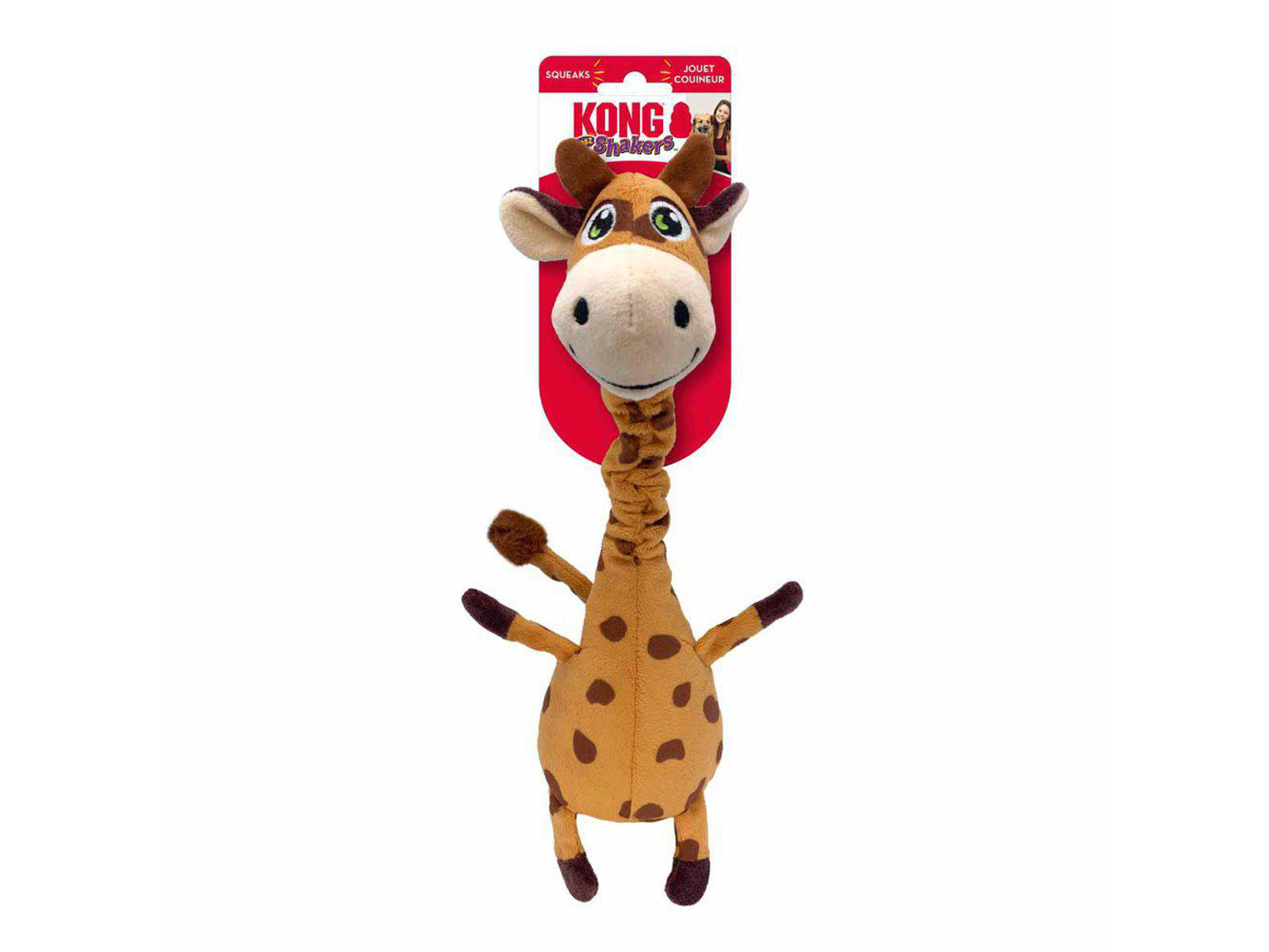 En hård, fleksibel snor i denne girafs hals lader ham nikke en invitation til at tæske sin lange, floppy krop i en instinkttilfredsstillende safari med rystelser drevet af en lav-tonet squeaker. KONG Shakers Bobz Giraffe har en hård, fleksibel snor i sin vaklende hals, der lader ham nikke en invitation til at tæske sin lange, floppy krop i en instinkttilfredsstillende safari med rystelser. Den lavtonede squeaker forlænger spilletid, mens et lag af forstærkning forlænger det sjove med at trække, hente og slynge.