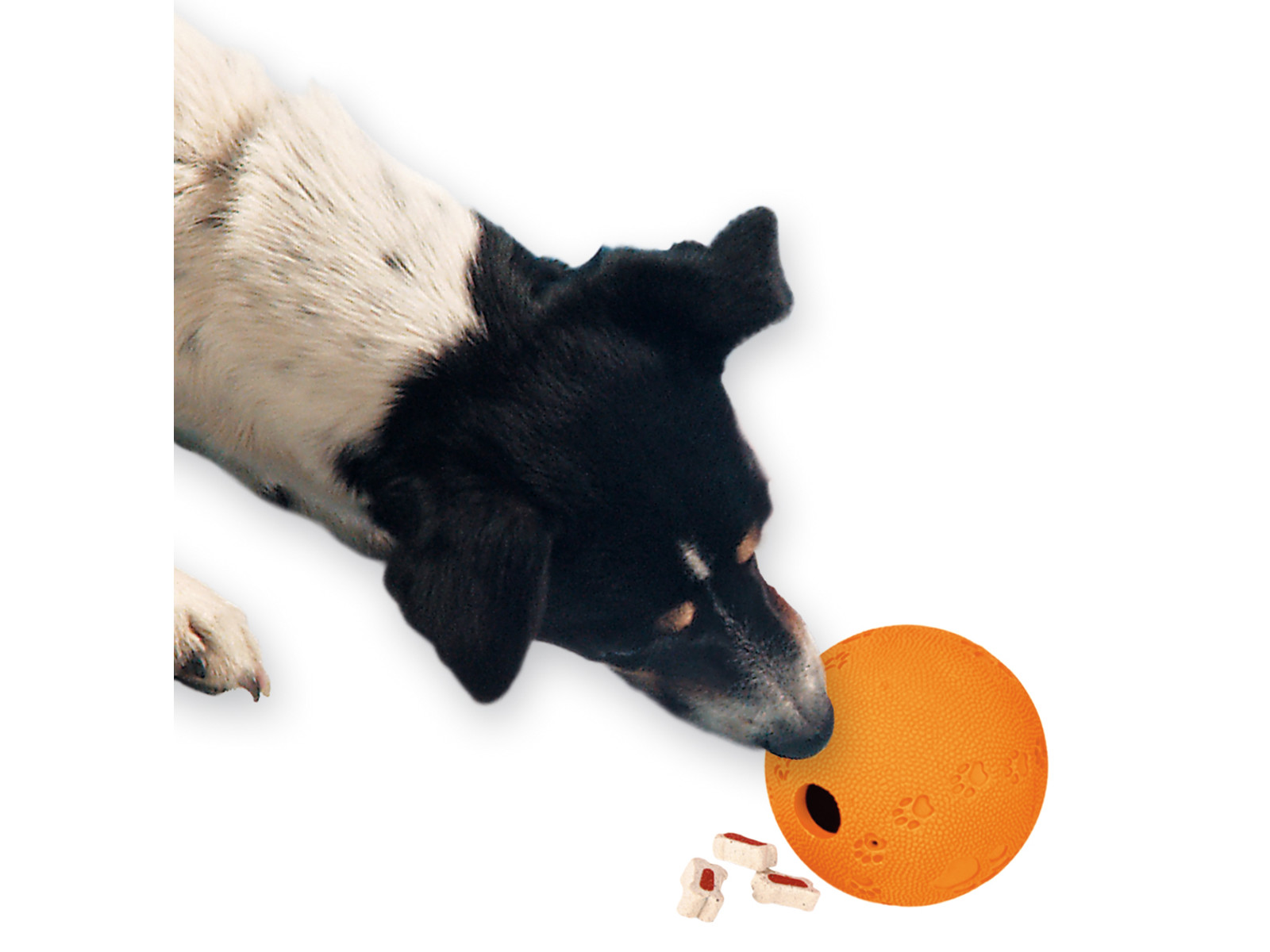 • Super sjov labyrint bold hvor hunden skal skubbe til den, indtil at der falder en godbid ud af bolde.