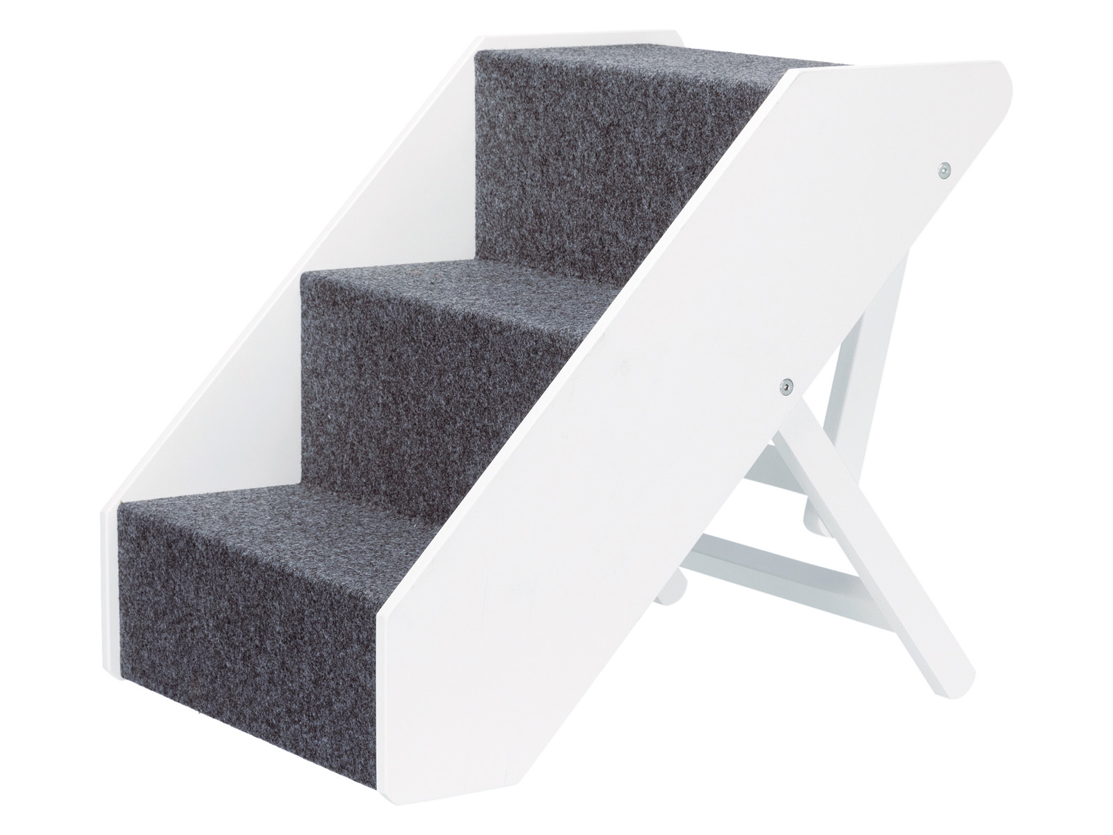 Trixie hundetrappen har skridsikre gummifødder, som sikrer, at den står stabilt, når din hund går på den, ligesom den har en skridsikker filt-belægning, der forhindrer din hund i at glide på trappetrinene.