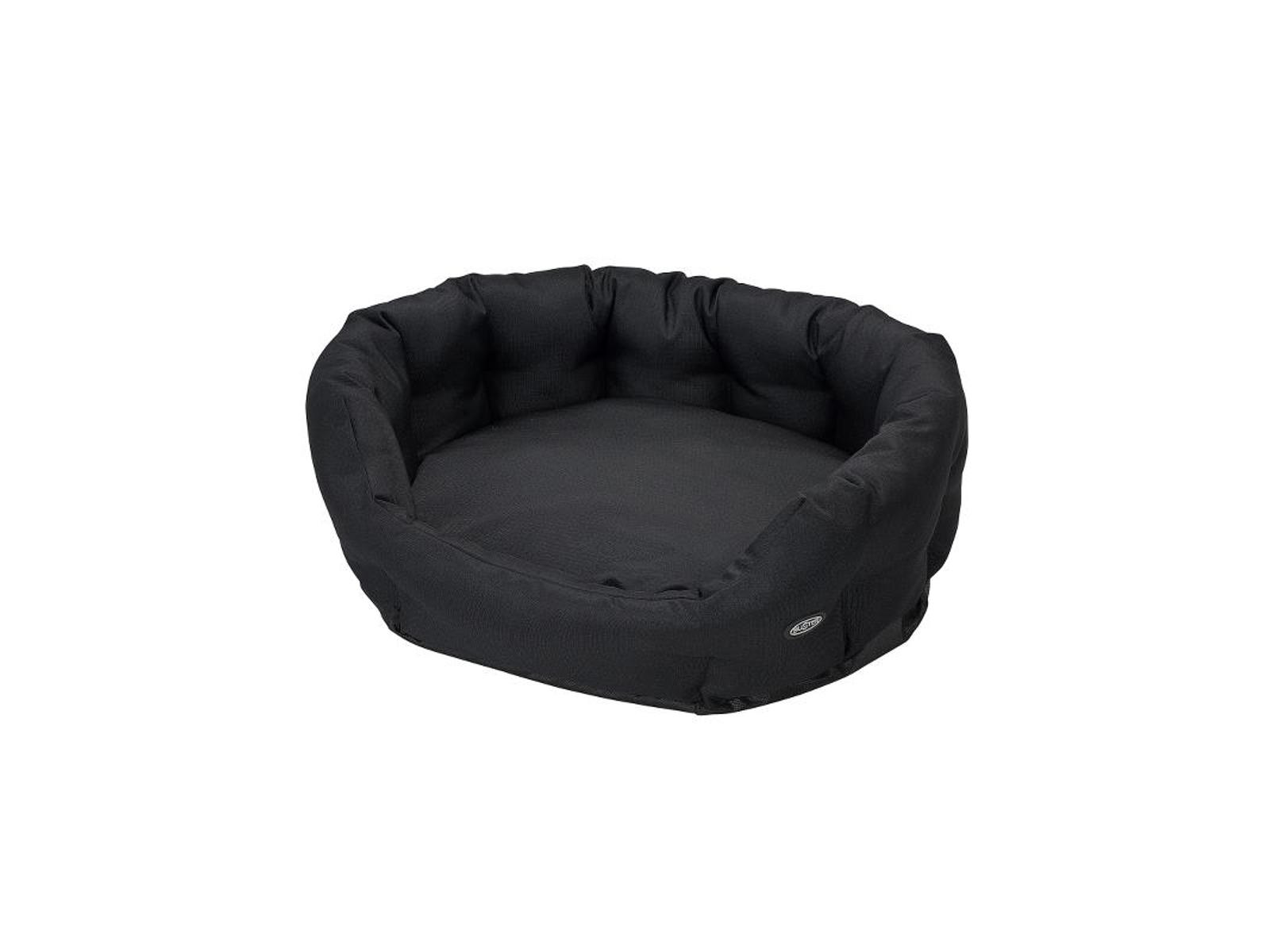 Det bløde polyestermateriale i pude og ryg gør sengen dejlig blød at ligge i for hunden. Puden er aftagelig, og det vand- og smudsafvisende ydermateriale gør sengen nem at holde ren.