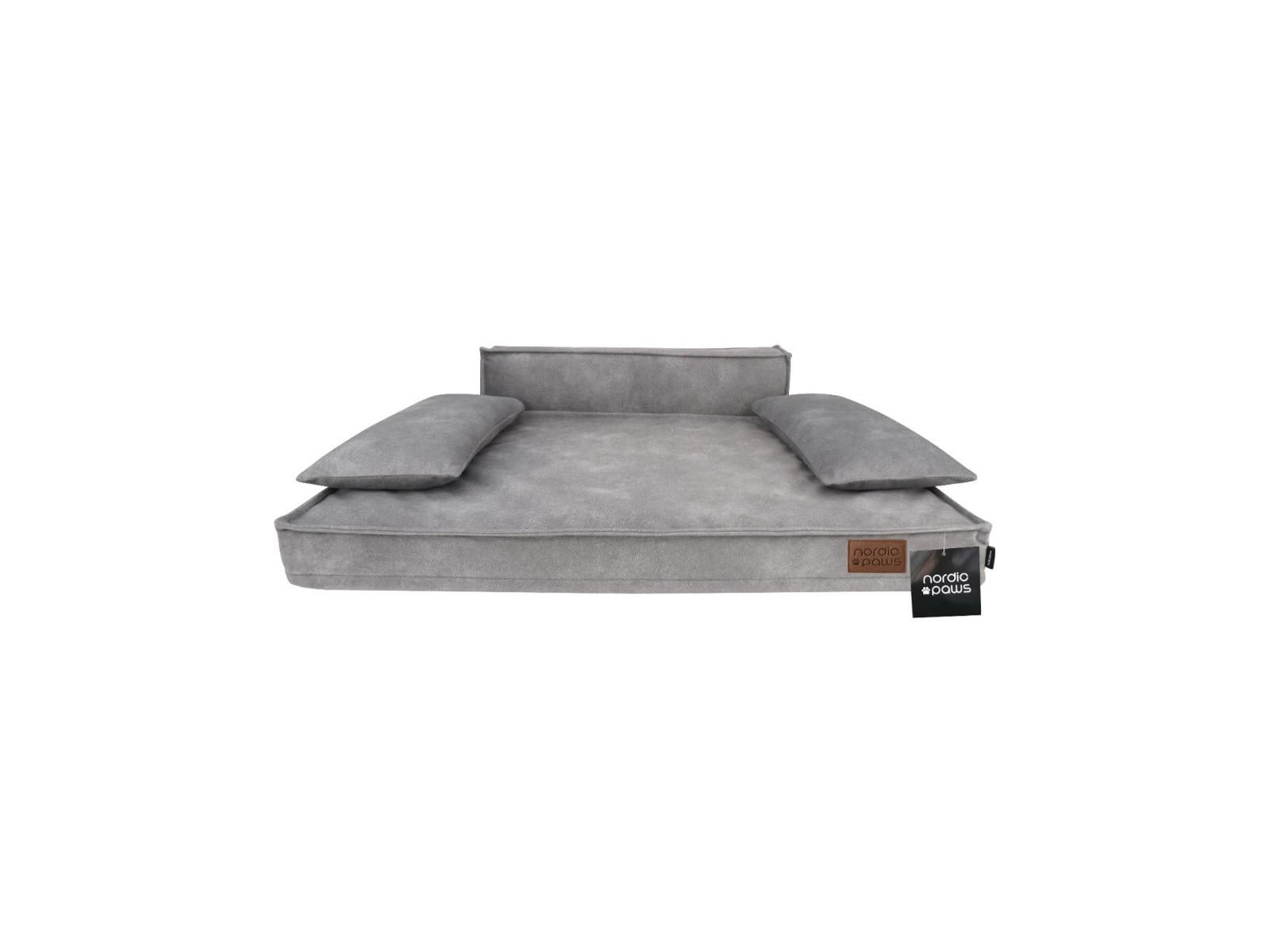 Stor lounge hundeseng i grå af mærket Nordic Paws. Fremstillet i slidstærkt materiale.