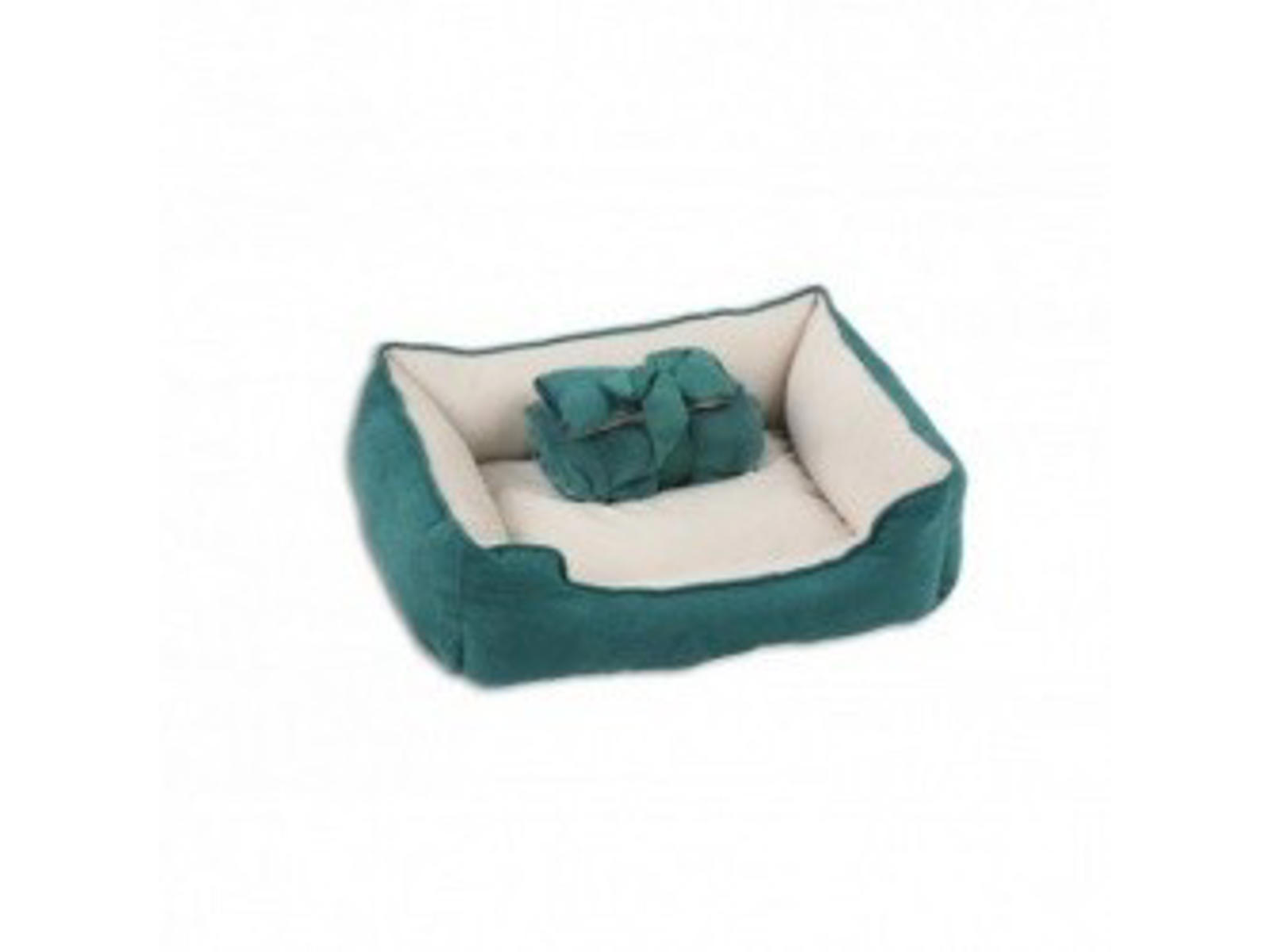 Komfortabel hundeseng med matchende tæppe og blødt legetøjsben. Perfekt til søvn, hygge og tryghed. Ideel til små og mellemstore hunde. Mål: 56 x 43 x 18 cm.