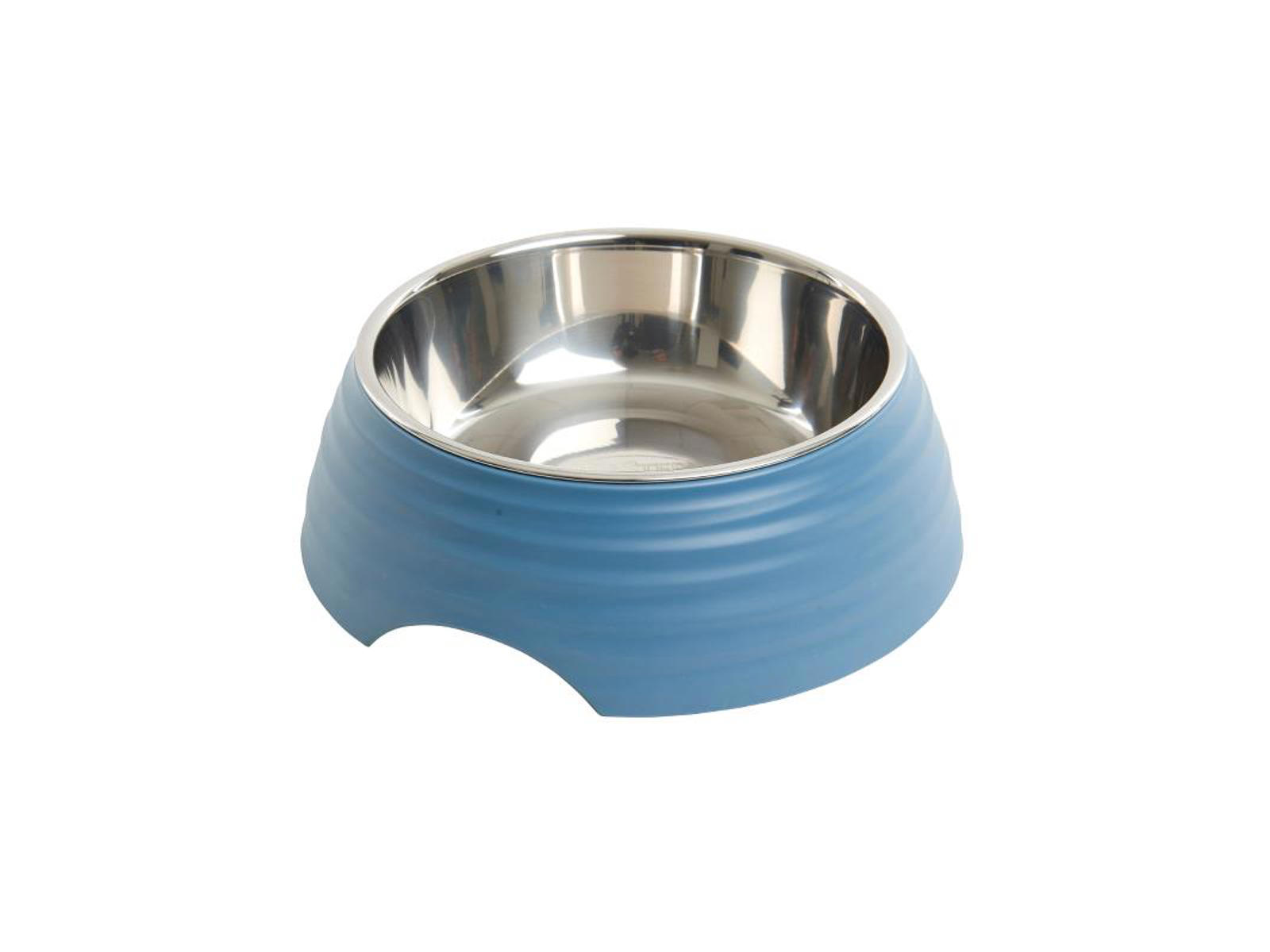 2in1 funktion: Den rustfri stålskål kan tages ud af melaminskålen. De glatte overflader gør skålene ekstra hygiejniske og ideelle til mad. Bunden af skålen har gummifødder som forhindrer skålen i at glide på gulvet.