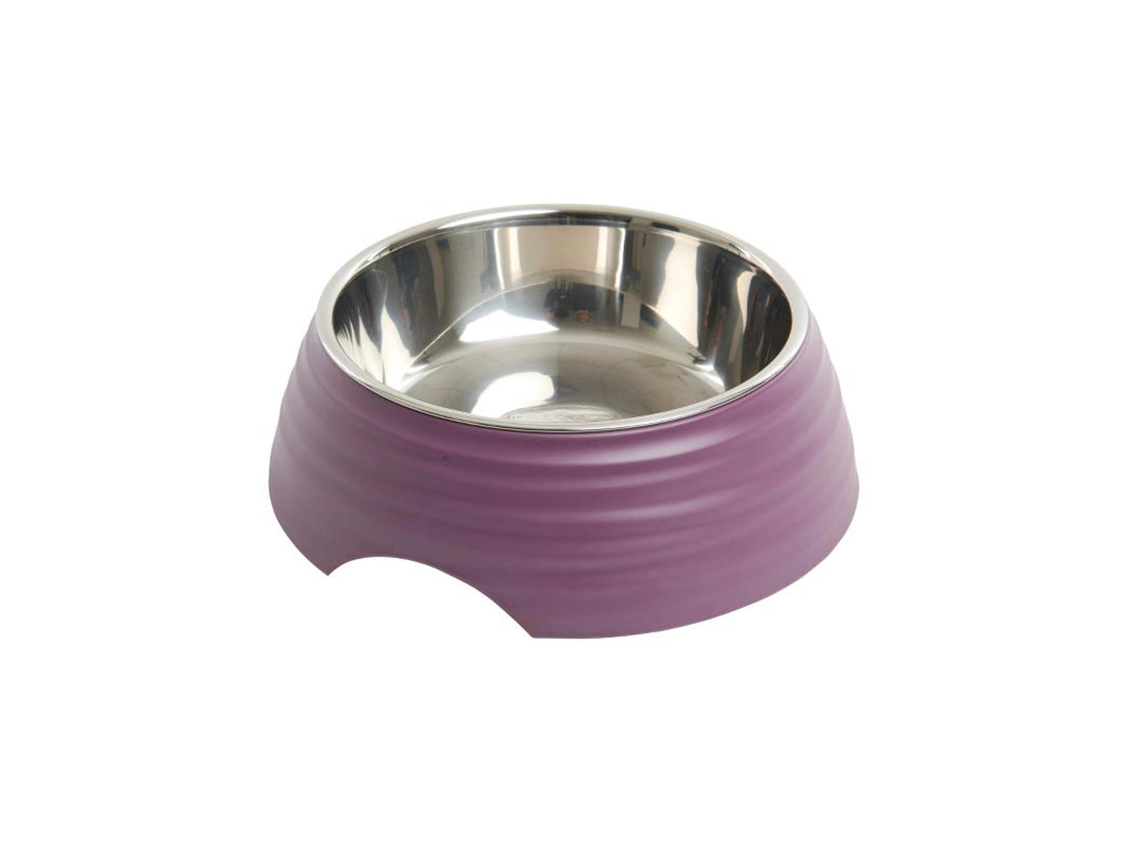 2in1 funktion: Den rustfri stålskål kan tages ud af melaminskålen. De glatte overflader gør skålene ekstra hygiejniske og ideelle til mad. Bunden af skålen har gummifødder som forhindrer skålen i at glide på gulvet.