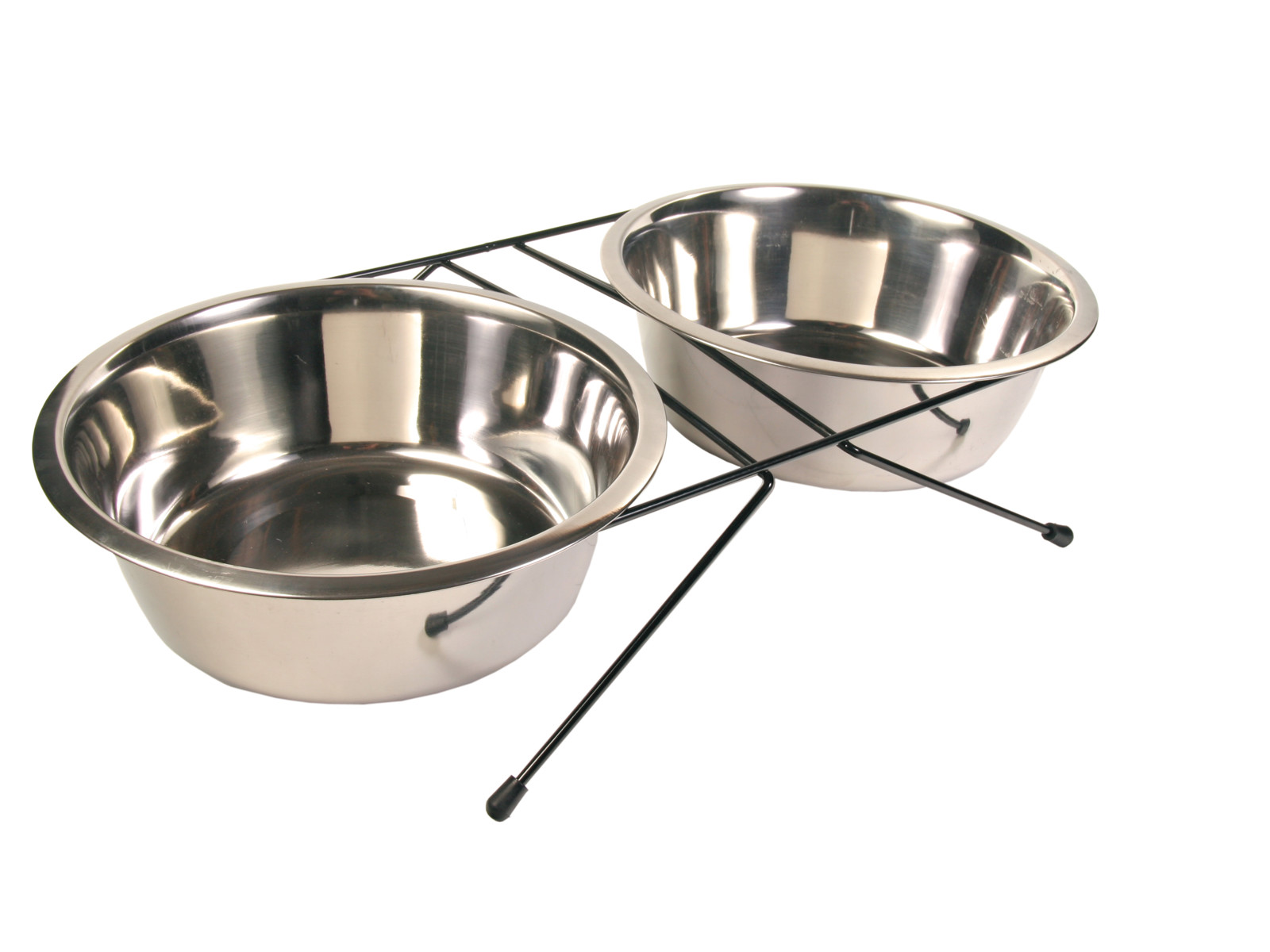 Stander med 2 skåle i rustfrit stål.