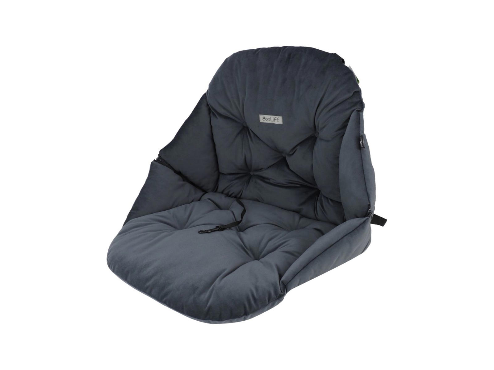 En lynlås på hver side af puden sikrer, at sædet har den rette form, når den er monteret på bilens sæde.