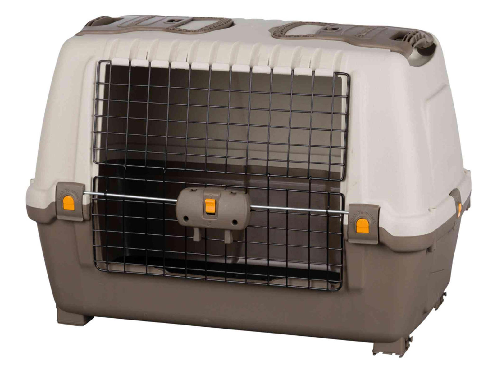 Lavet af holdbart slagfast plast. Har to håndtag på hver side for nem løft. Tung metaldør, der åbner helt. Låse, der er lette at bruge. Godt ventileret. Let at rengøre med aftagelig drænende gulv.