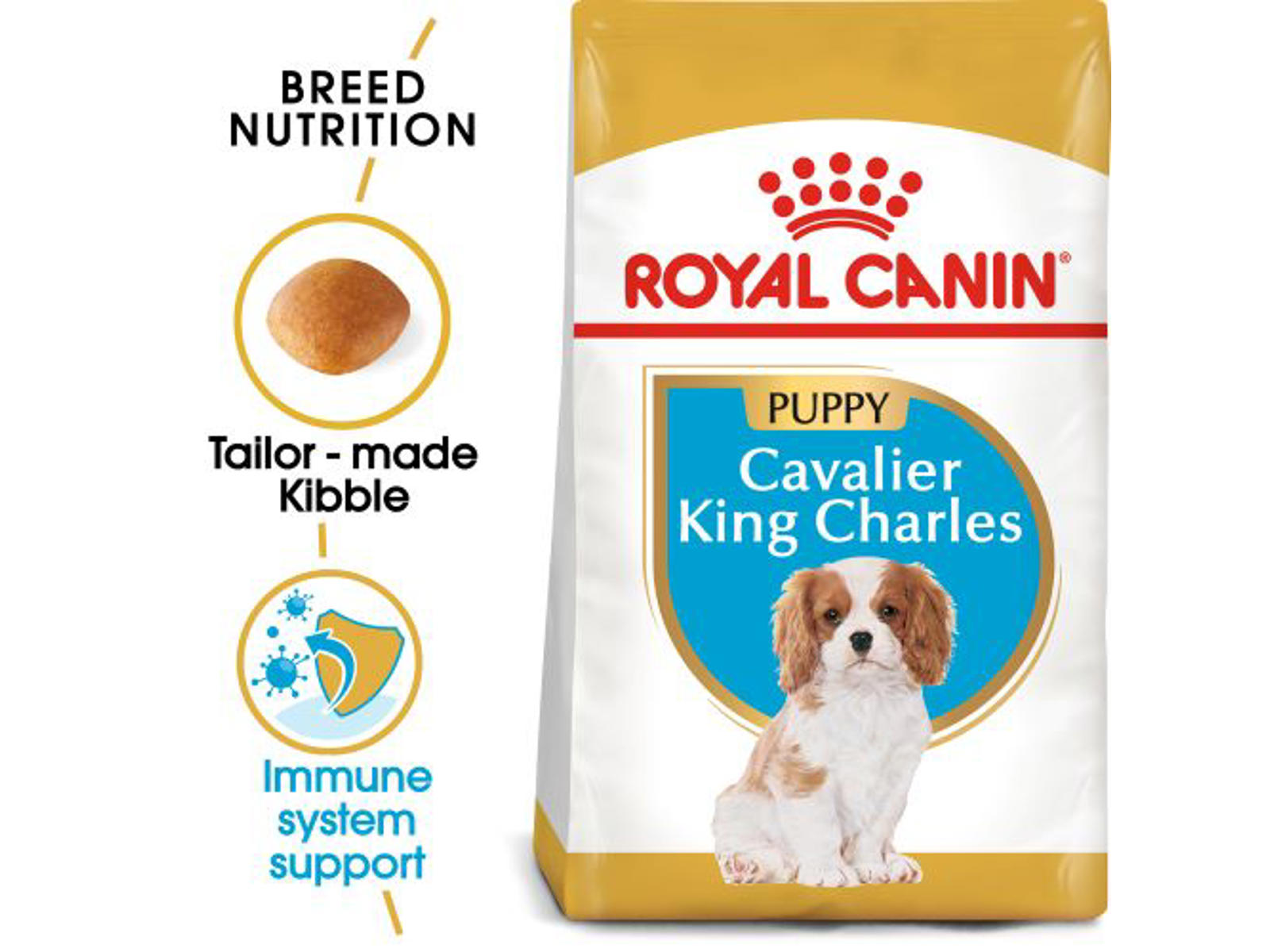Royal Canin Cavalier King Charles Puppy er foderet til hvalpe af den specifikke race. Foderet skal bruges fra hunden er afvænnet modermælken (ca. fra 8. uge) og frem til hundens 10. måned. Foderet er specielt sammensat med alle de nødvendige næringsstoffer, vitaminer og mineraler, som hvalpen har behov for under den intensive vækstperiode.