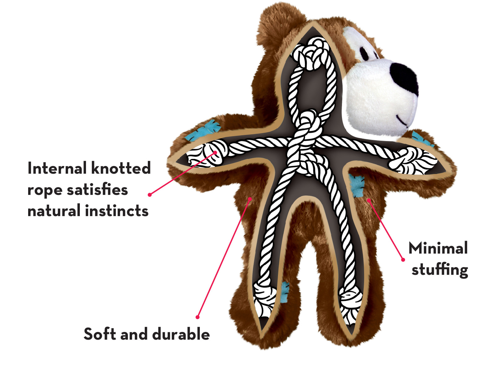 KONG Wild Knots Bears piber for at opfordre til leg, og de har mindre fyld, så skelettet bedre kan fornemmes af hundene.