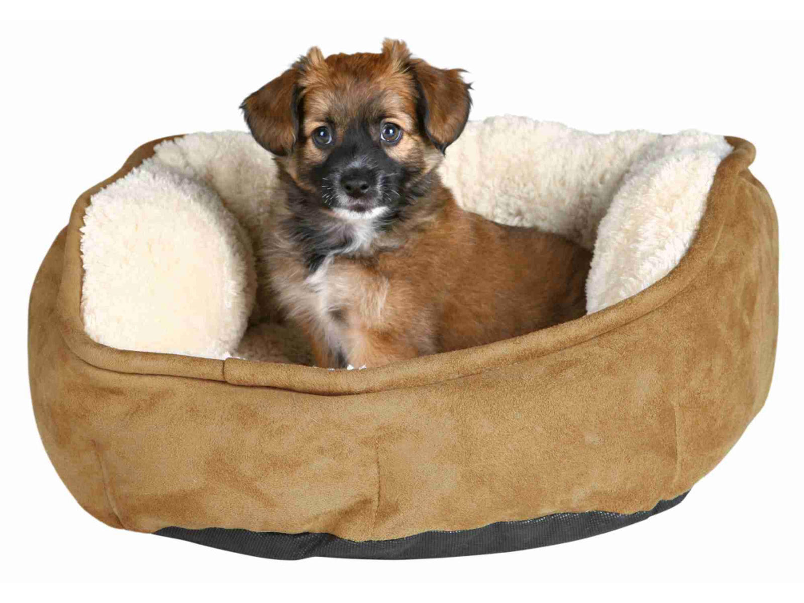 • Blød hundeseng i velour-look.De tætte og høje kanter giver hunden  tryghed, når den sover.
