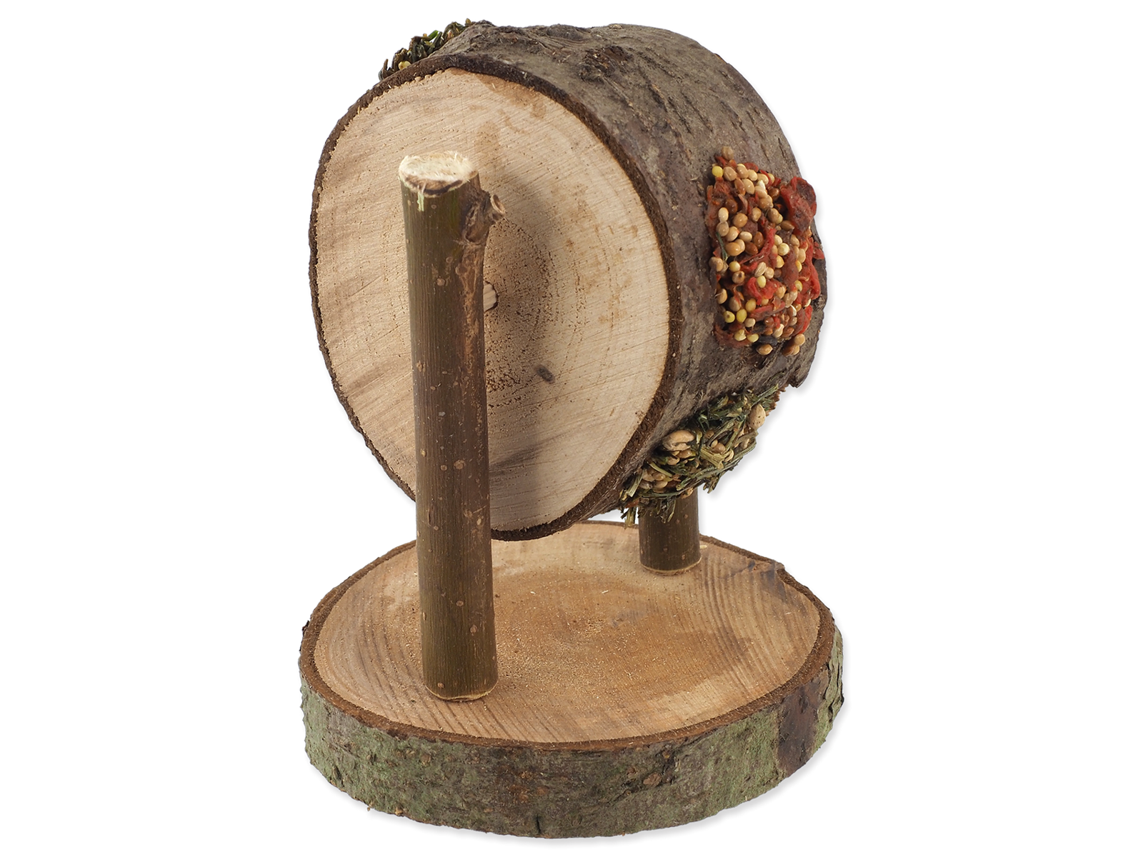 Sammensætning: løvtræ, fyld (tørrede gulerødder 28,4 %, tørret persille 17,8 %, gul hirse 16,9 %, rød hirse, stivelse, hvede).